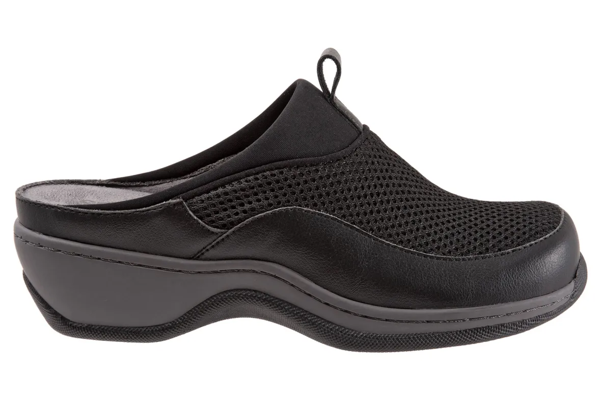 Softwalk Aberdeen is a sporty slip-on mule built for comfort. These versatile sneakers have polyester stretch blend uppers, microfiber linings and PU outsole. A removable footbed, back pull-tab and 1 ¾ inch heel height elevates this trendy mule sneaker.