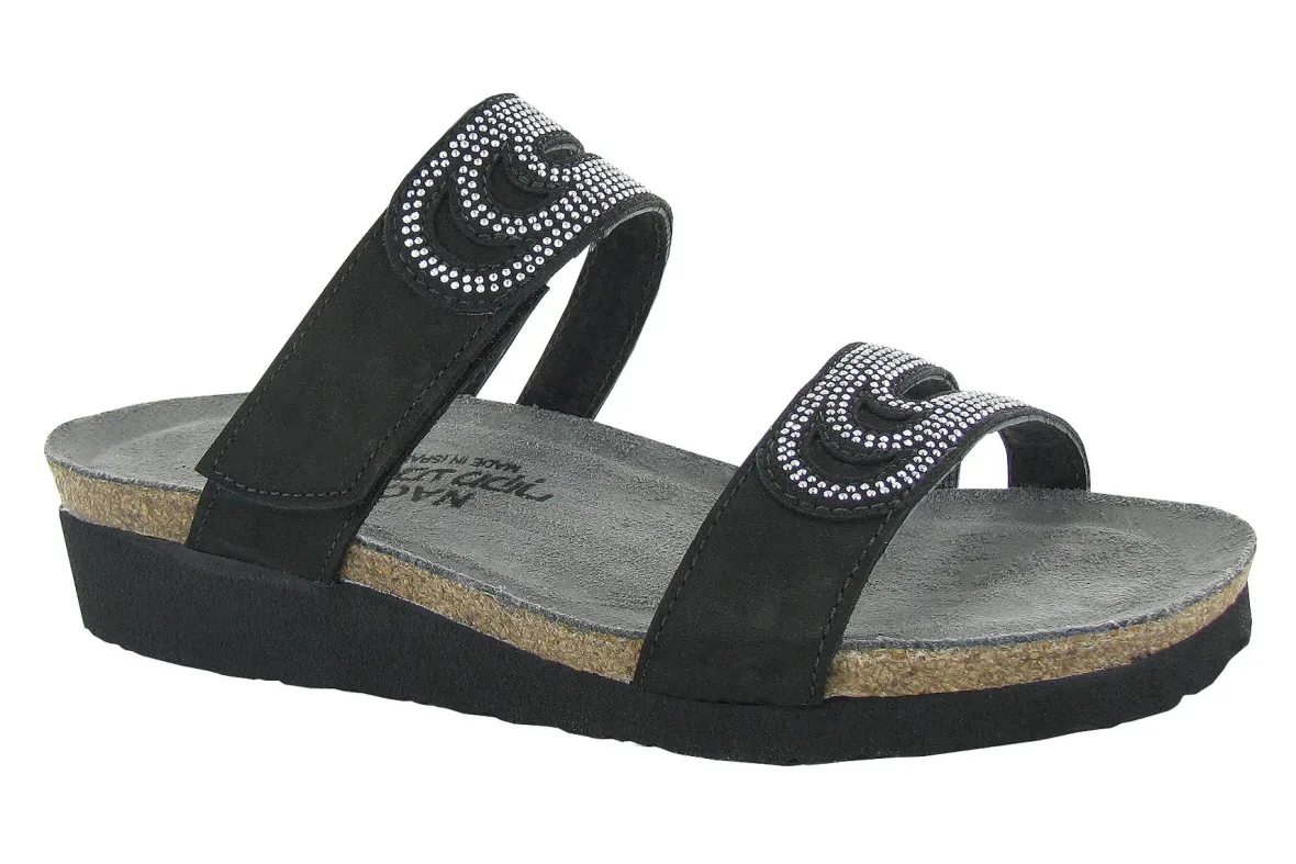 Warm weather comfort is delivered in the women’s Naot Ainsley sandal. The leather upper features an adjustable hook and loop closure for a customized fit. The cushioned, cork and latex footbed absorbs shock and supports the foot from heel to toe, while the durable rubber outsole provides traction and stability. Leather upper features an adjustable hook and loop closure for a customized fit.Cushioned, cork and latex footbed absorbs shock and supports the foot from heel to toe.Durable rubber outsole provides traction and stability.Heel Height: 1½ inches