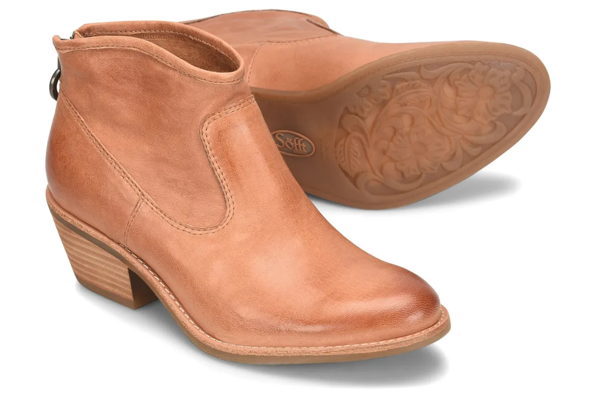 Sofft Aisley is a durable and reliable ankle boot. Features include an Italian leather upper, cushioned footbed, heel zipper and lightweight TPR outsole. A microfiber lining, almond toe and 2-inch stacked heel heights will make these booties a new favorite.