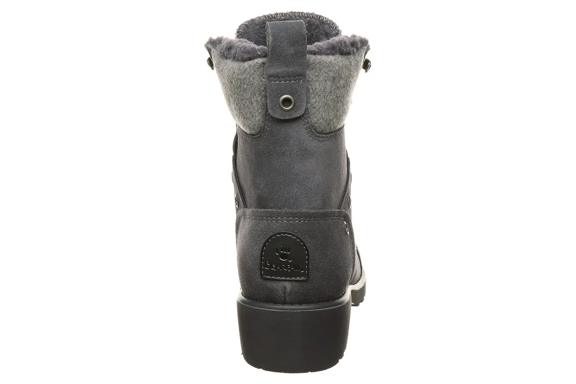 Bearpaw Alicia is a warm winter boot designed for comfort. Features include soft suede and felted wool uppers, wool blend lining and blown rubber outsole. These Bearpaw boots also have an adjustable fit lace-up closure and removable comfort sheepskin footbed.