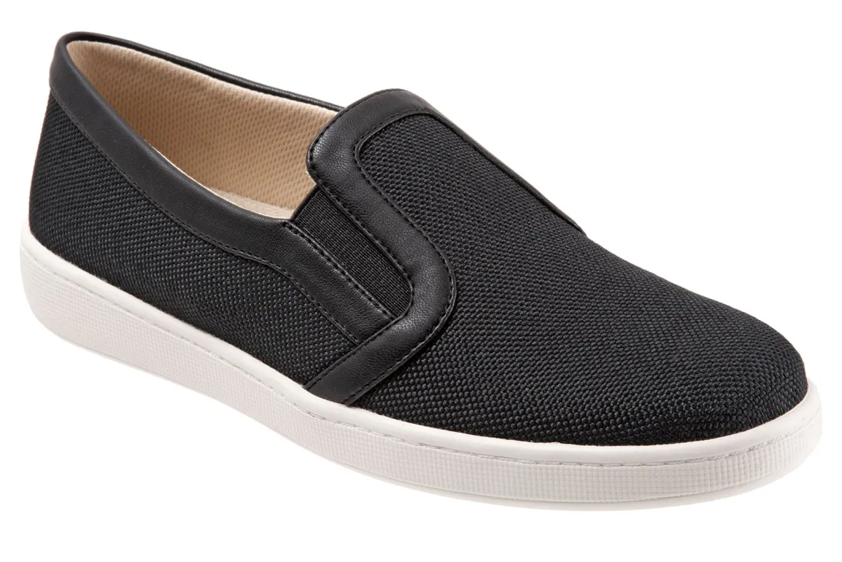 Trotters Alright is a classic and comfortable slip-on sneaker. Features include canvas uppers, mesh textile lining, removable insole and rubber outsole. Side elastic goring, almond toe silhouette and 1-inch heel height will make these timeless sneakers a wardrobe staple.
