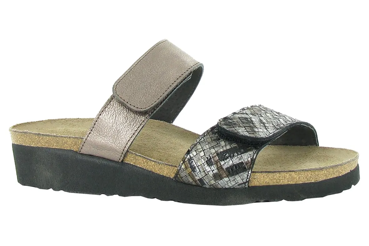 The Naot women’s Althea is a style you can seamlessly slide into for Spring. The double hook and loop straps allow for easy on/off. Naot’s anatomic cork and latex footbed is wrapped in a pampering suede and molds to the shape of the foot with wear.