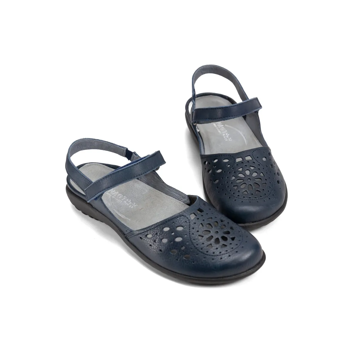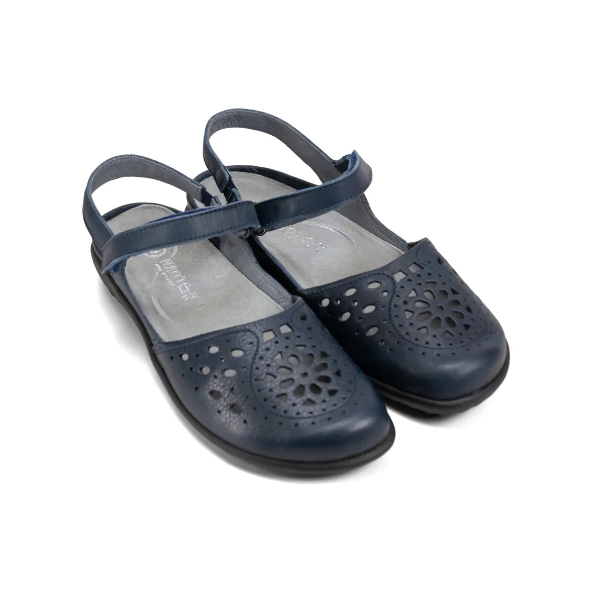 The Naot Arataki is a closed toe slingback shoe with unique cutout designs. This style has a hook and loop closure at th…