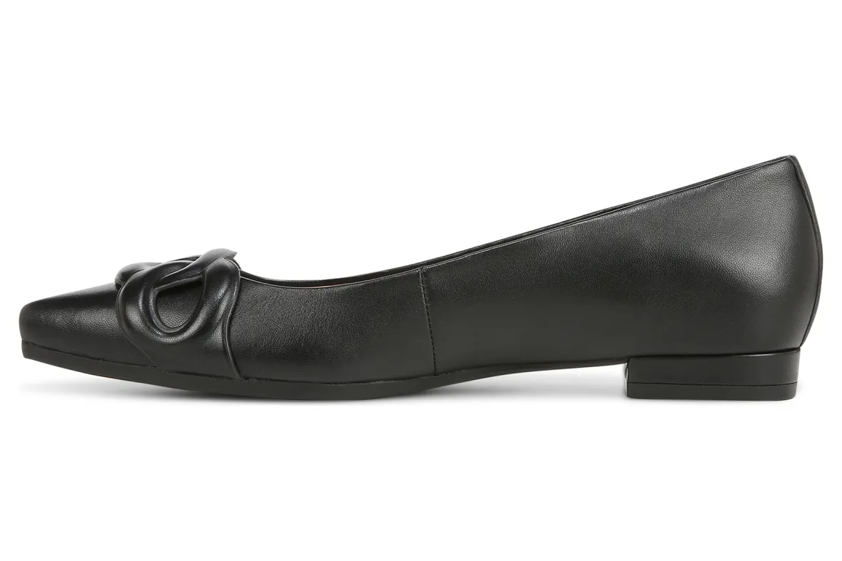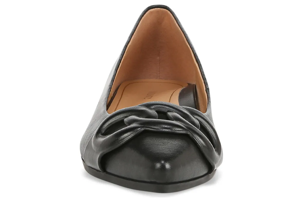 From the pointed toe, understated buckle, and puff chain detail to the just-right heel, this comfy flat is an instant classic.