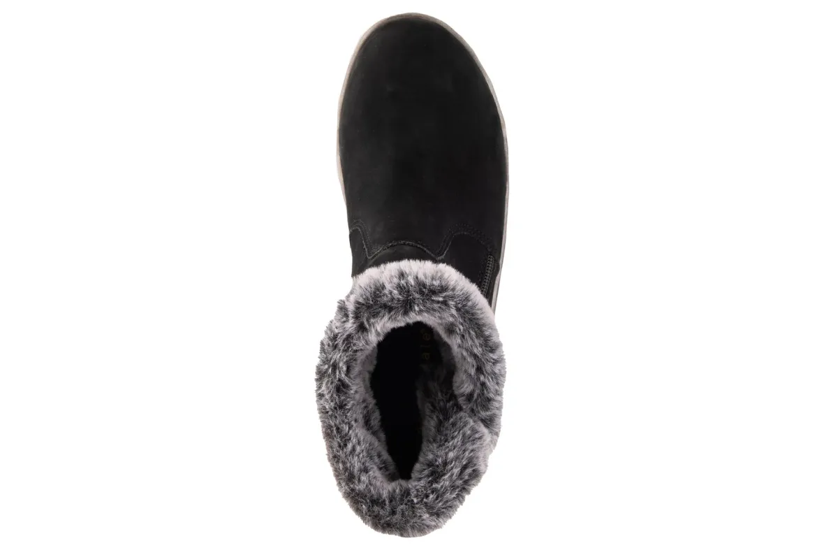 Soft nubuck upper with faux fur collar.Updated skid resistant opposite ridged rubber outsole.Angled exterior side zipper for easy on and off.Tricot linings and removable foam padded insole. 1 inch unit bottom height, 4 3/4 inch shaft height,11 inch shaft circumference.