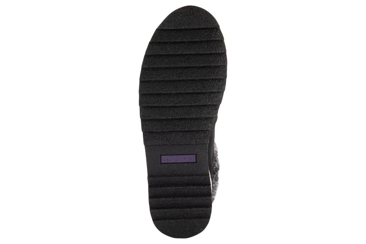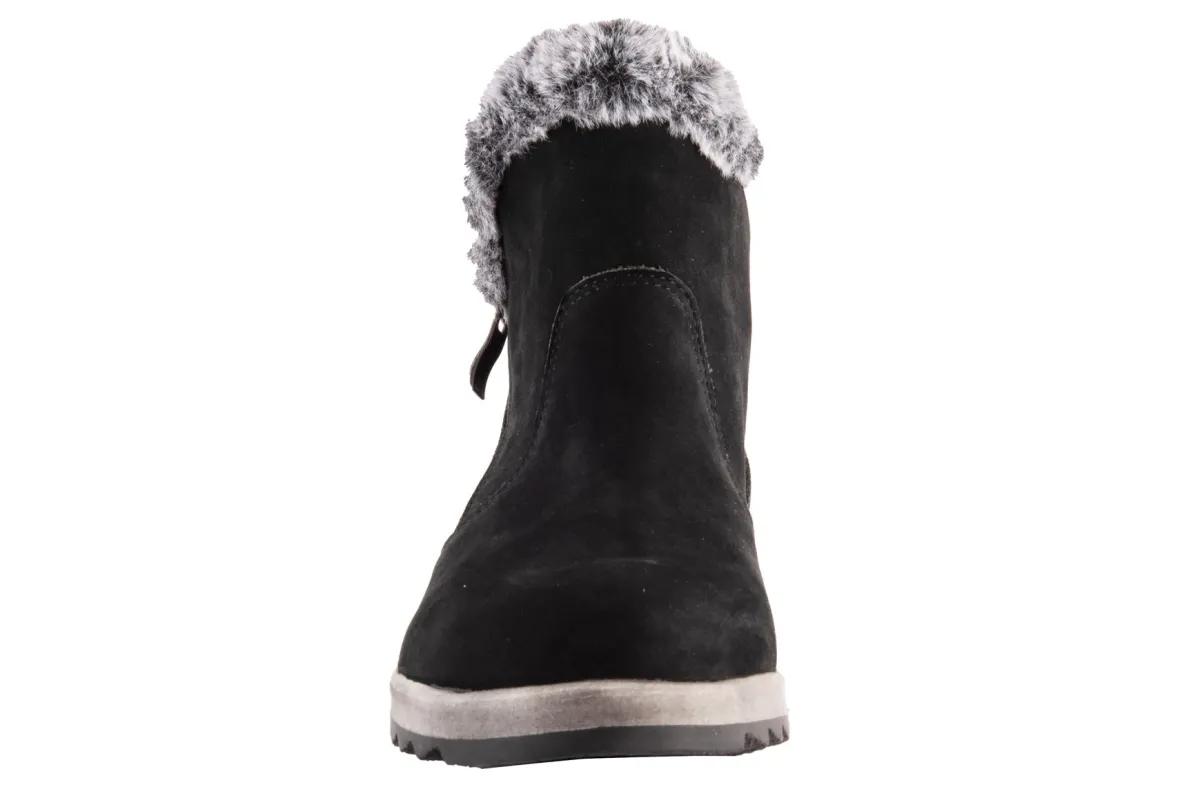 Soft nubuck upper with faux fur collar.Updated skid resistant opposite ridged rubber outsole.Angled exterior side zipper…