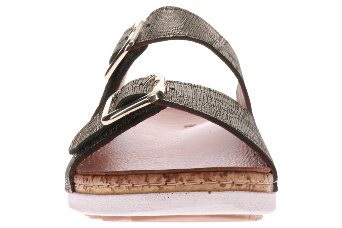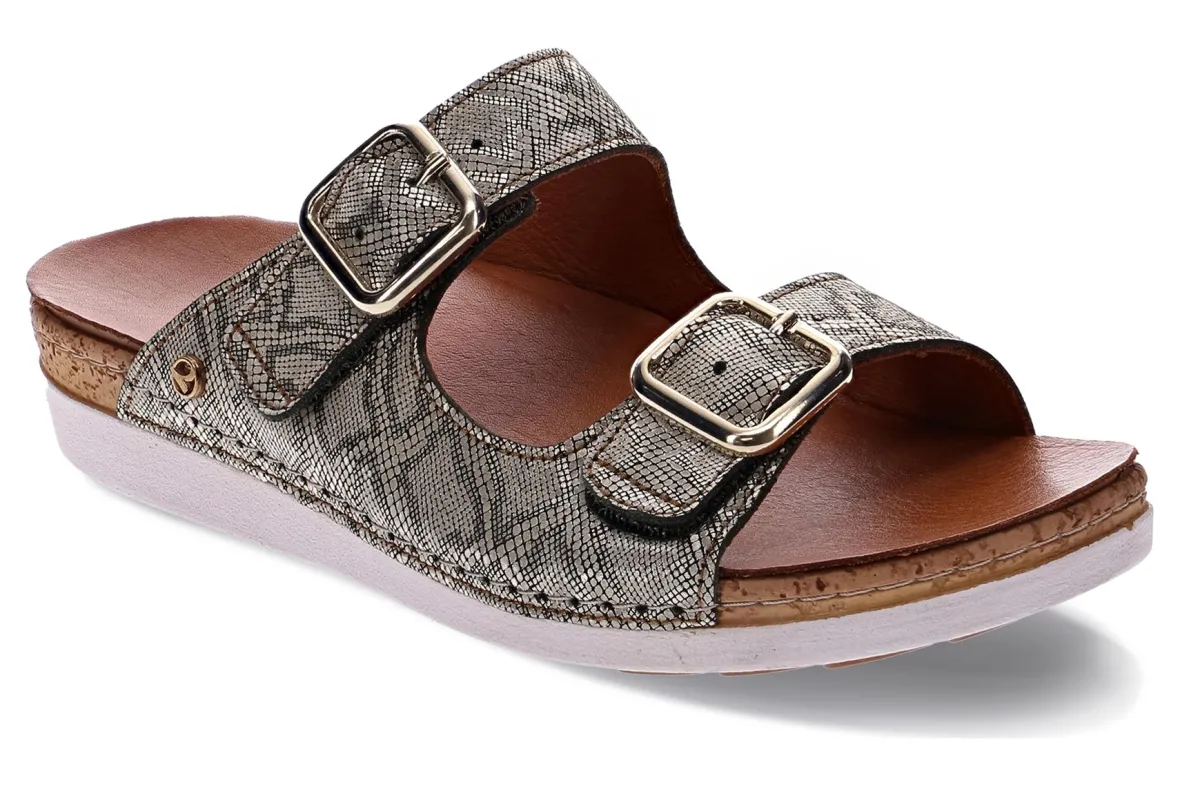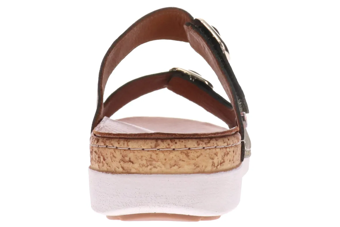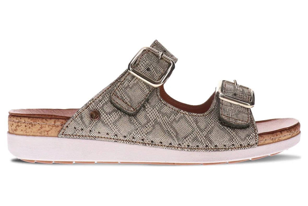 The Brighton orthotic slip ons are those ‘throw-on-and-go’ styles that tick all the boxes – comfortable, stylish and effortless. They feature a removable contoured footbed atop an uplifting platform, providing a hint of height and added comfort during all-day escapades. The adjustable straps which cover and support bunions are topped off with non-functional (but beautiful) buckles. We love these orthotic slide sandals.FEATURES