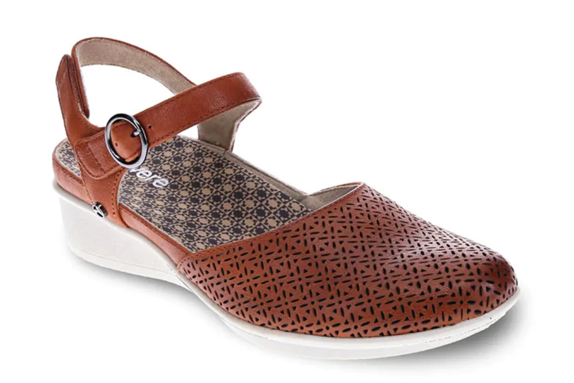 Revere Calabria back strapsandalfeatures beautifully crafted laser cutouts across the forefoot, that not only enhance the look of this classywedge, but also provides seamless comfort for your toes. Maximum adjustability around the ankle with a faux buckle detail, and adjustable back strap.
