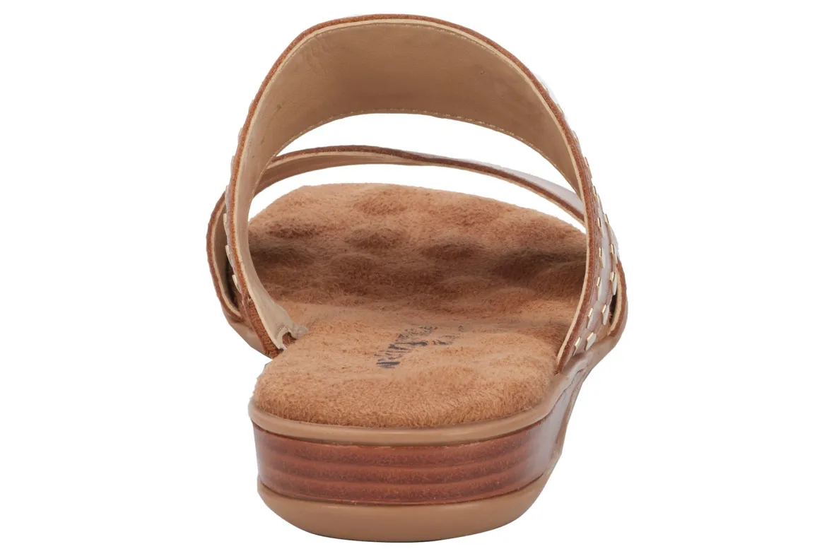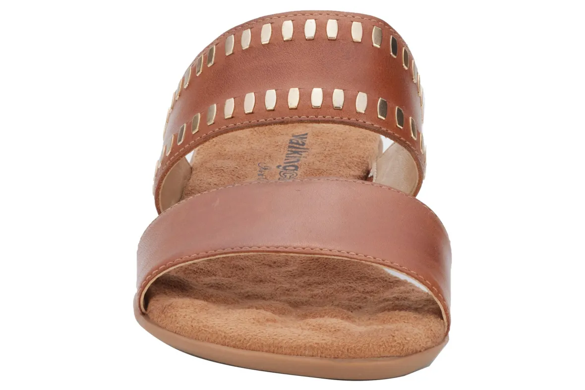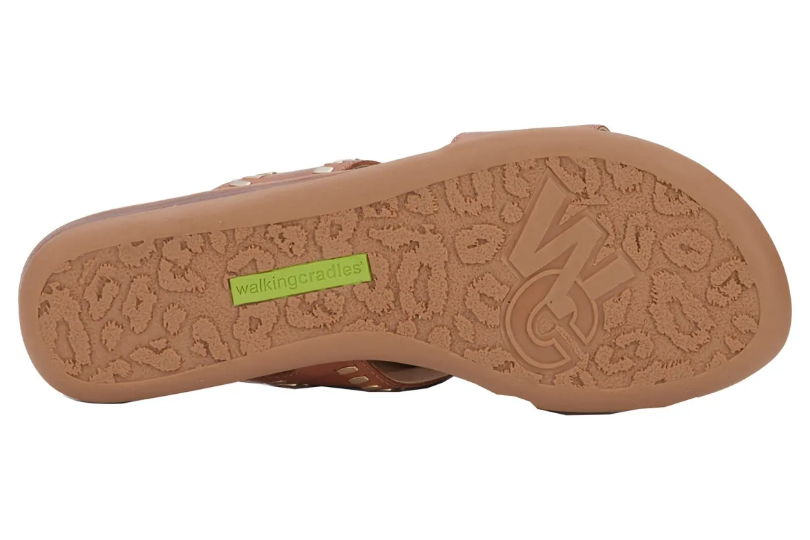 When you’re ready to take your look to the next level, Walking Cradles Camilla is the perfect sandal for you! Two wide leather straps feature soft leather with metal accent details. A discreet instep gore allows this slip-on sandal to fit perfectly to your foot! Signature Tiny Pillows provide extreme cushioning with moderate arch support. A leather covered 1” heel is the perfect height to keep you comfortably on your feet all day!