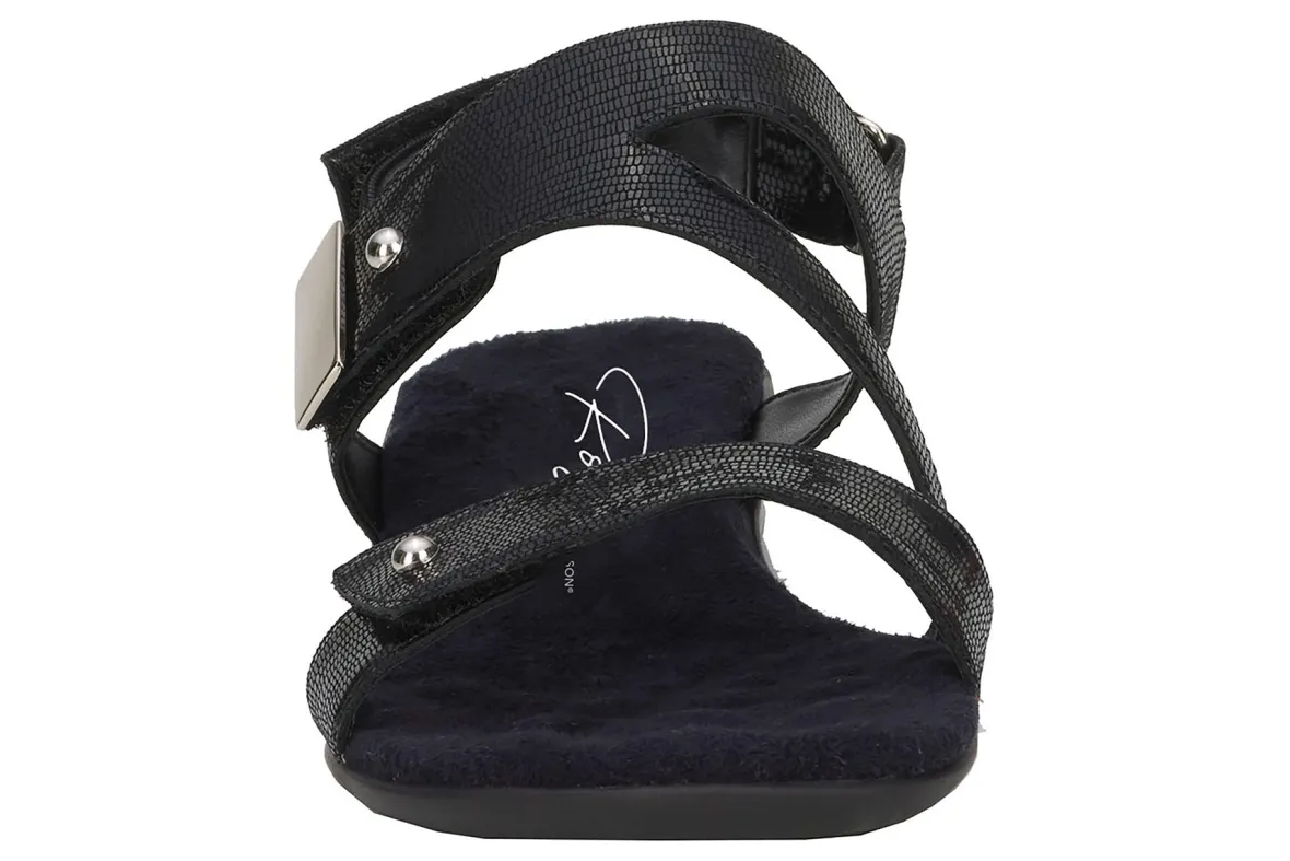 Fashion, fit and feel – Chloe really does have it all! All three straps are completely adjustable by hidden hook and loop closures. Lovely metallic details add flair to this supportive yet flattering sandal.Our signature Tiny Pillows footbeds provide extreme cushioning with moderate arch support. A stacked look 1” wedge heel on a unit bottom is the perfect height for you to walk all day!