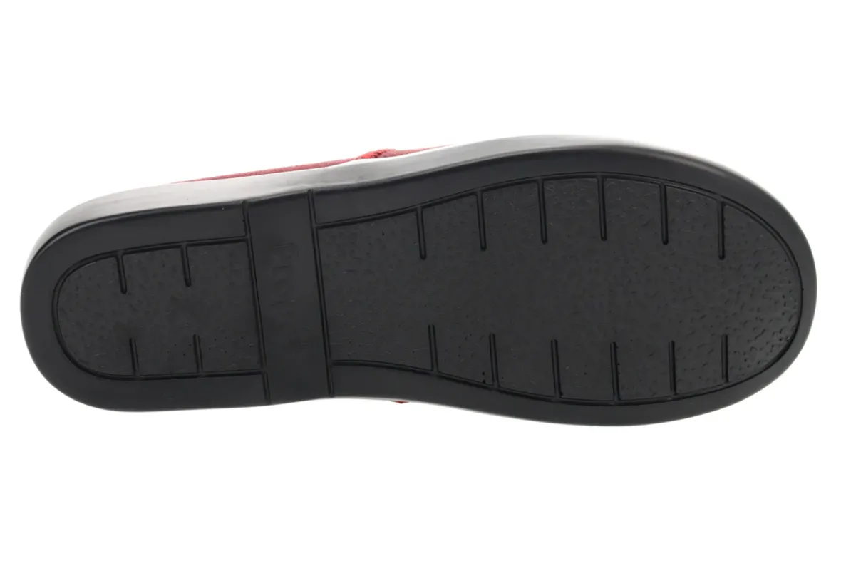 Propet Colbie is a warm and roomy slipper. Features include a suede upper with faux fur lining, slip-on construction, removable footbed and PU outsole. A high density PU foam ensures a cooler footbed, while the warm faux fur trim keeps feet warm during cold weather days.
