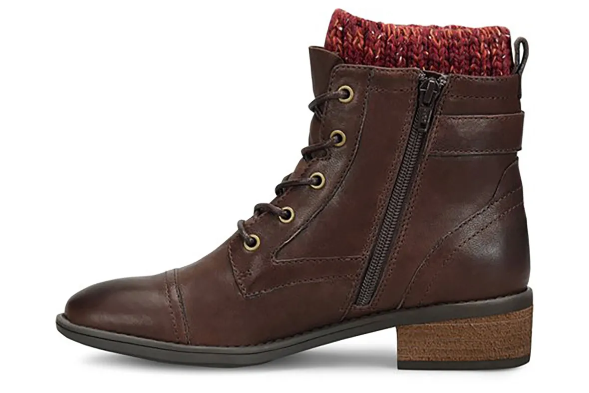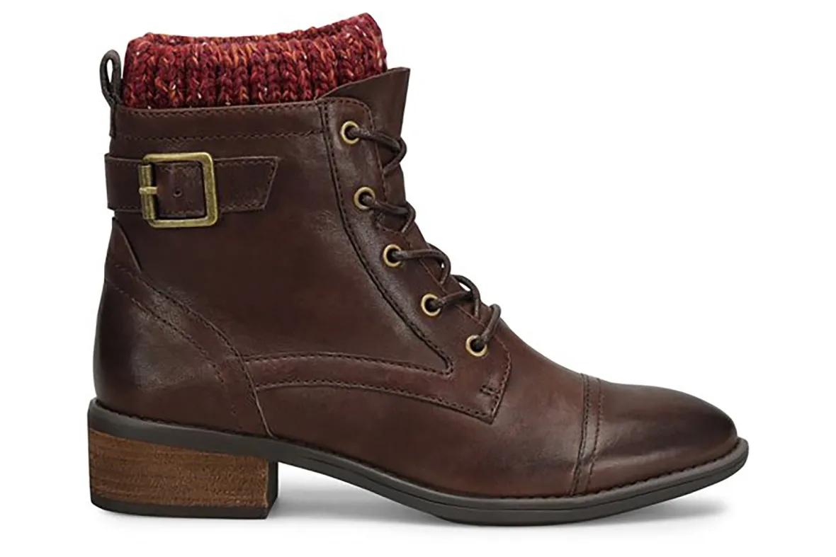 Comfortiva Cordelia is a warm and cozy women’s boot. Features include Italian leather uppers, memory foam footbeds, sweater knit collar and TPR outsole. Your feet will love the soft microfiber linings, buckle detail, lace-up closure, 1 ½ inch heel height and 6-inch shaft height.
