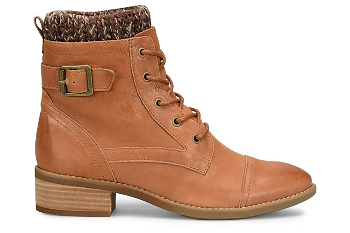 Comfortiva Cordelia is a warm and cozy women’s boot. Features include Italian leather uppers, memory foam footbeds, sweater knit collar and TPR outsole. Your feet will love the soft microfiber linings, buckle detail, lace-up closure, 1 ½ inch heel height and 6-inch shaft height.