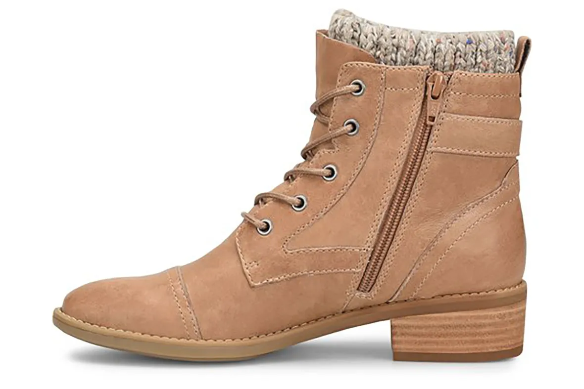 Comfortiva Cordelia is a warm and cozy women’s boot. Features include Italian leather uppers, memory foam footbeds, sweater knit collar and TPR outsole. Your feet will love the soft microfiber linings, buckle detail, lace-up closure, 1 ½ inch heel height and 6-inch shaft height.