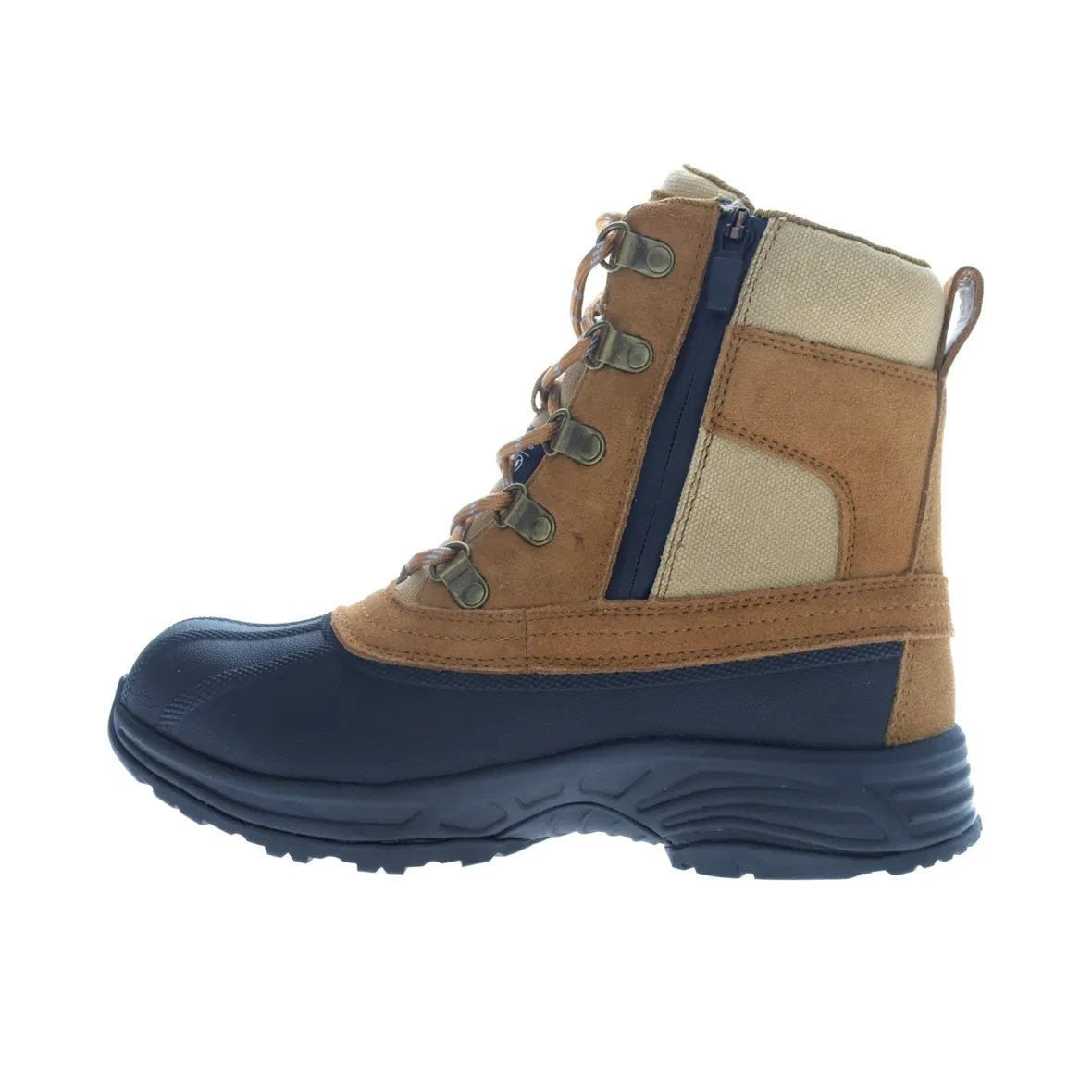 Designed to keep you comfortable and dry in any weather, the Propet Cortland features an oiled suede upper, waxed canvas shaft, and a molded rubber toe for added durability and weather resistance. Quick and easy speed lacing with an insulated waterproof bootie construction ensure your feet remain warm and dry all day long.