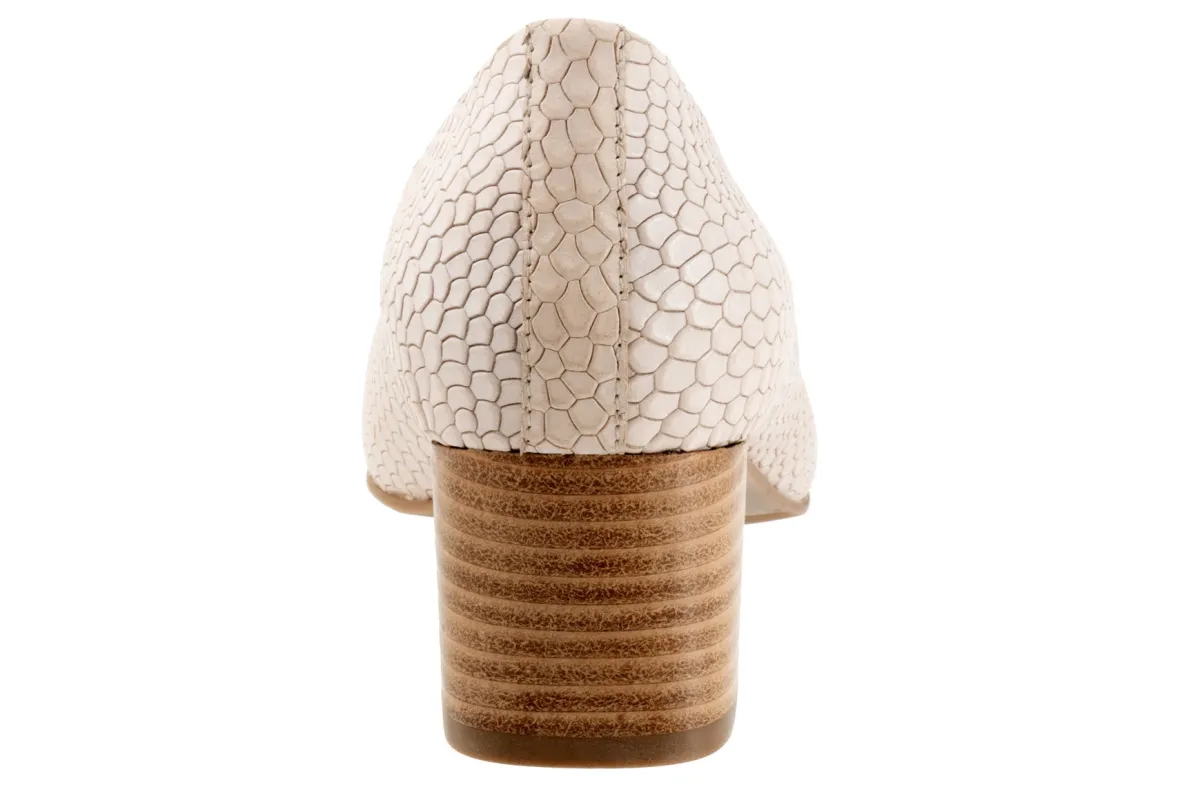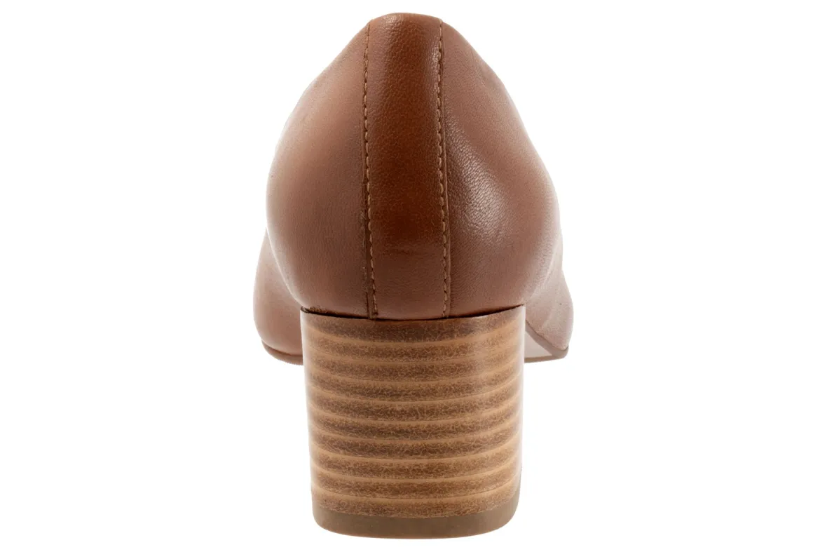 The Trotters Daria is a classic block heel pump that has a cushioned footbed with arch support.