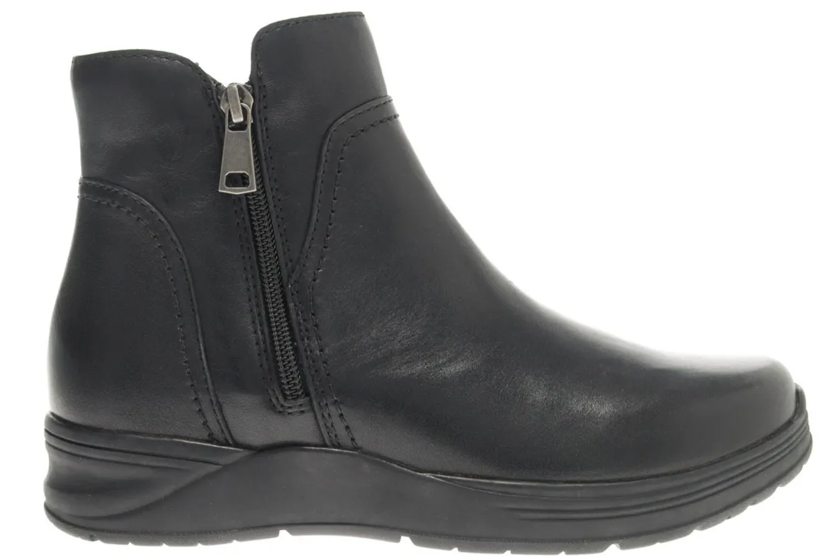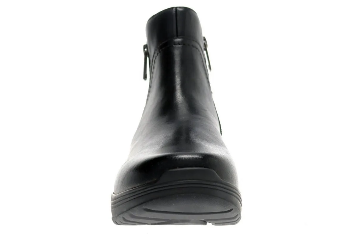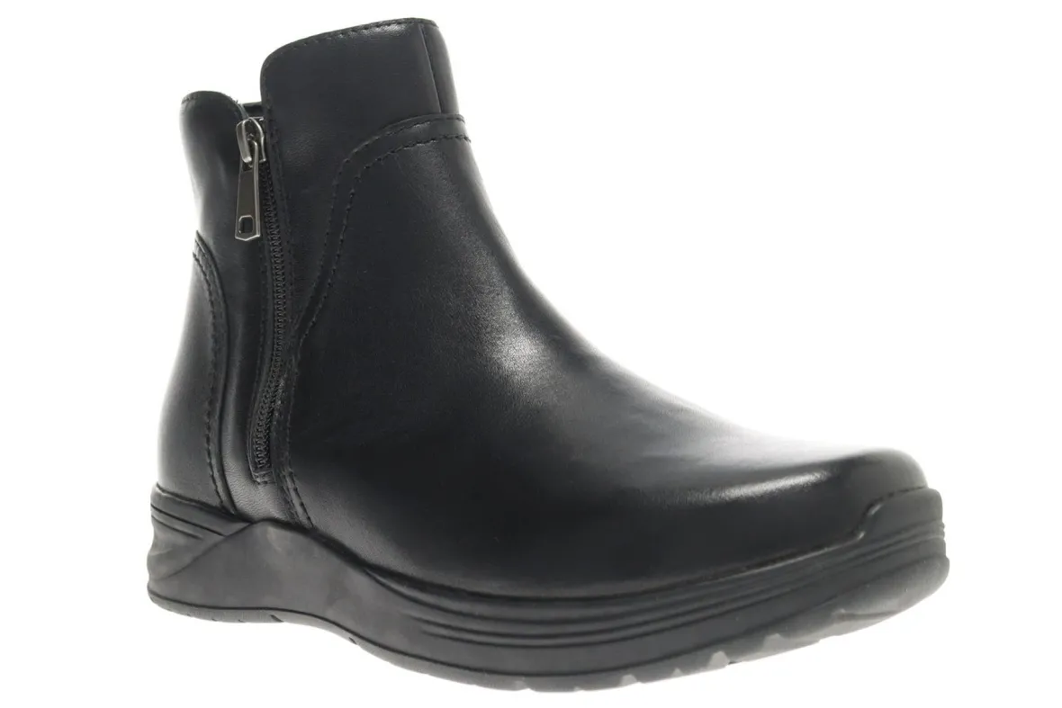 Propet Delphi is an elegant and comfortable bootie for any terrain. Prominent features include water-resistant leather uppers, removable insoles and high traction rubber outsoles.