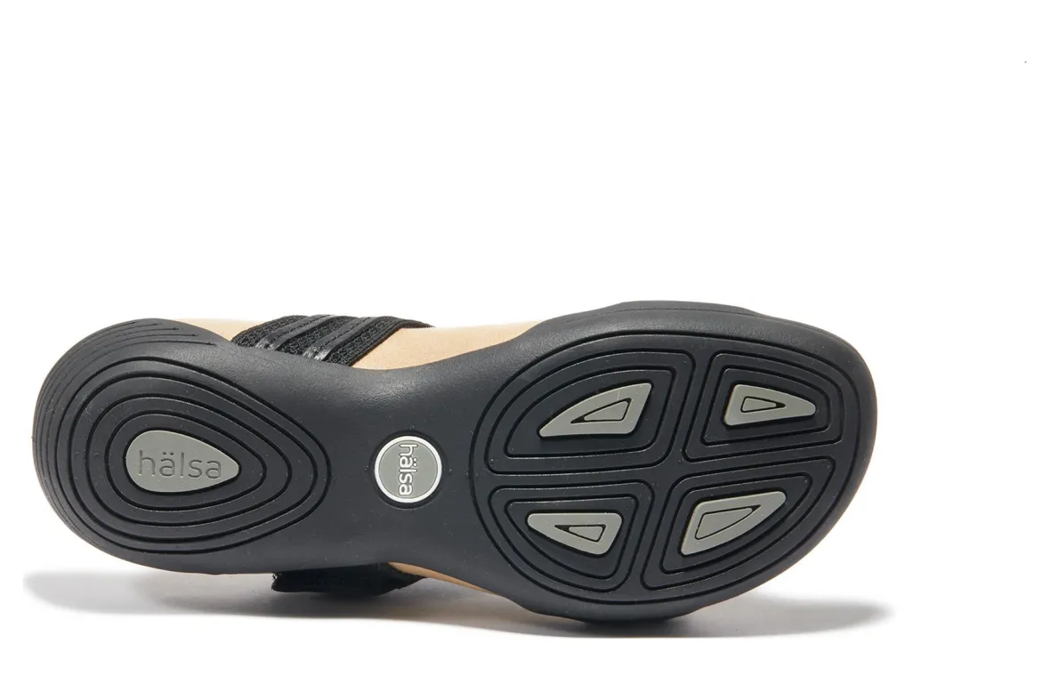 Halsa Footwear Desiree is a fashionable comfort sandal. Features include leather uppers, textile lining, cushioned EVA footbed and rubber and synthetic outsole. A hook and loop closure, lightweight and flexible midsole and metal hardware detailing will make these sandals a new favorite.