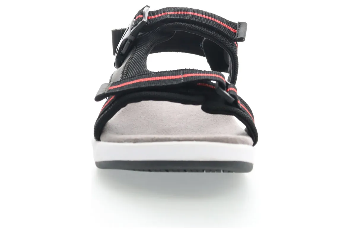 The Propet Eli is asandal withneoprene, PU, and braided nylon straps with 3 adjustable. Lightweight, ultra-cushioned EVA footbed for all-day comfort and support. High-performance rubber outsole provides traction and durability for long-lasting support.