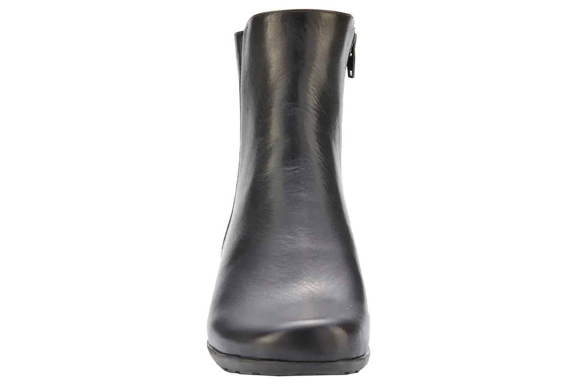 Classic and comfortable is the perfect combo in the Elsie bootie by Ros. Made with soft leather uppers, Elsie has an inside zipper making it easy to get on and off, while discreet gore near the zipper allows flexibility around the ankle. A roomy, walled toe box provides plenty of space for your toes. Signature Tiny Pillows insoles feel amazing with every step you take! The stacked-look heel is just the right height for keeping your heels pain-free. The stacked-look heel is just the right height for keeping your heels pain-free.Soft leather uppers Rounded toe with walled toe box for extra room Inside zipper and discreet instep gore Knit fit lining Sueded microfabric sock lining Cushioned, removable Tiny Pillows insoles Flexible rubber outsole Heel height: 1 1/4 inch Made in Ethiopia