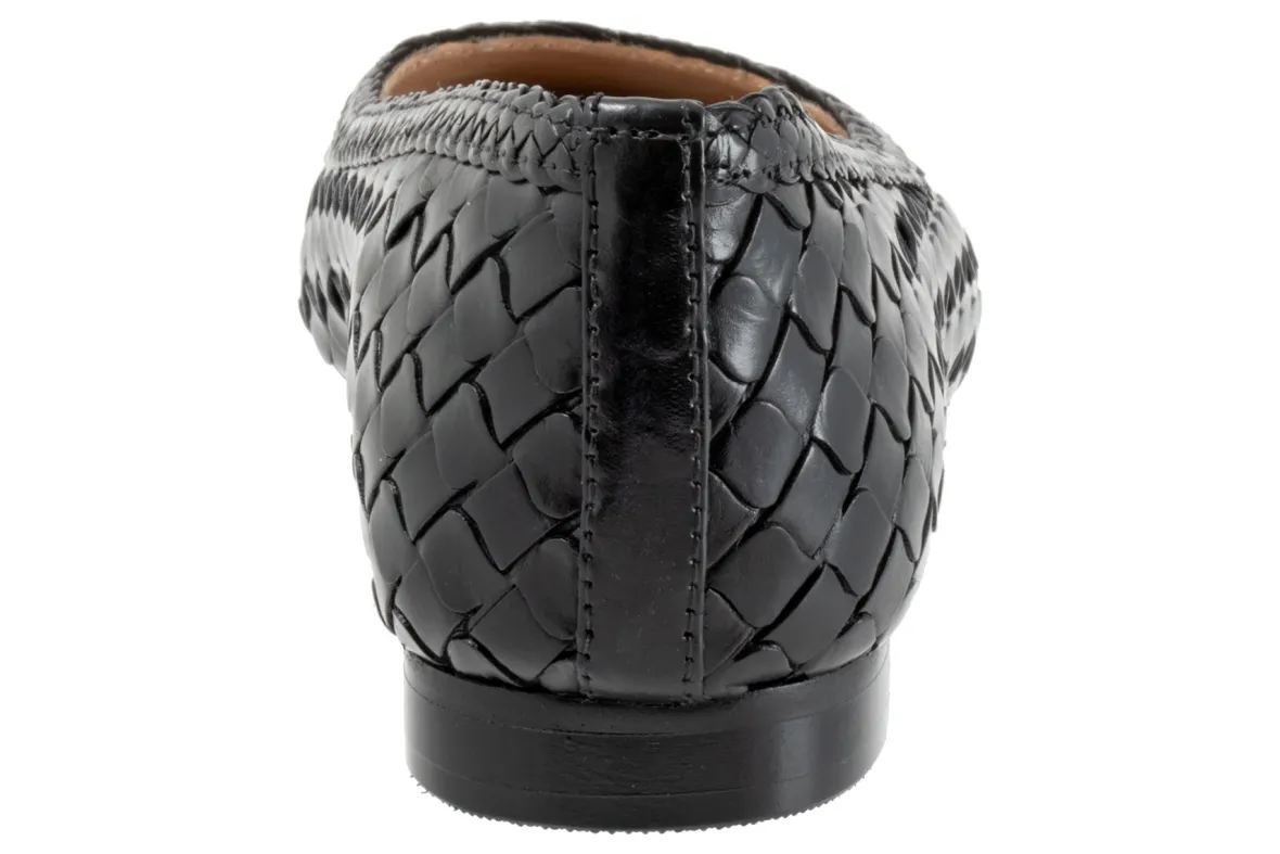 Beautiful woven leather in a fish scale design is complimented by a braided leather design along the top line of the Emmie flat. A fully leather-lined interior and cushioned footbed provide luxurious comfort.
