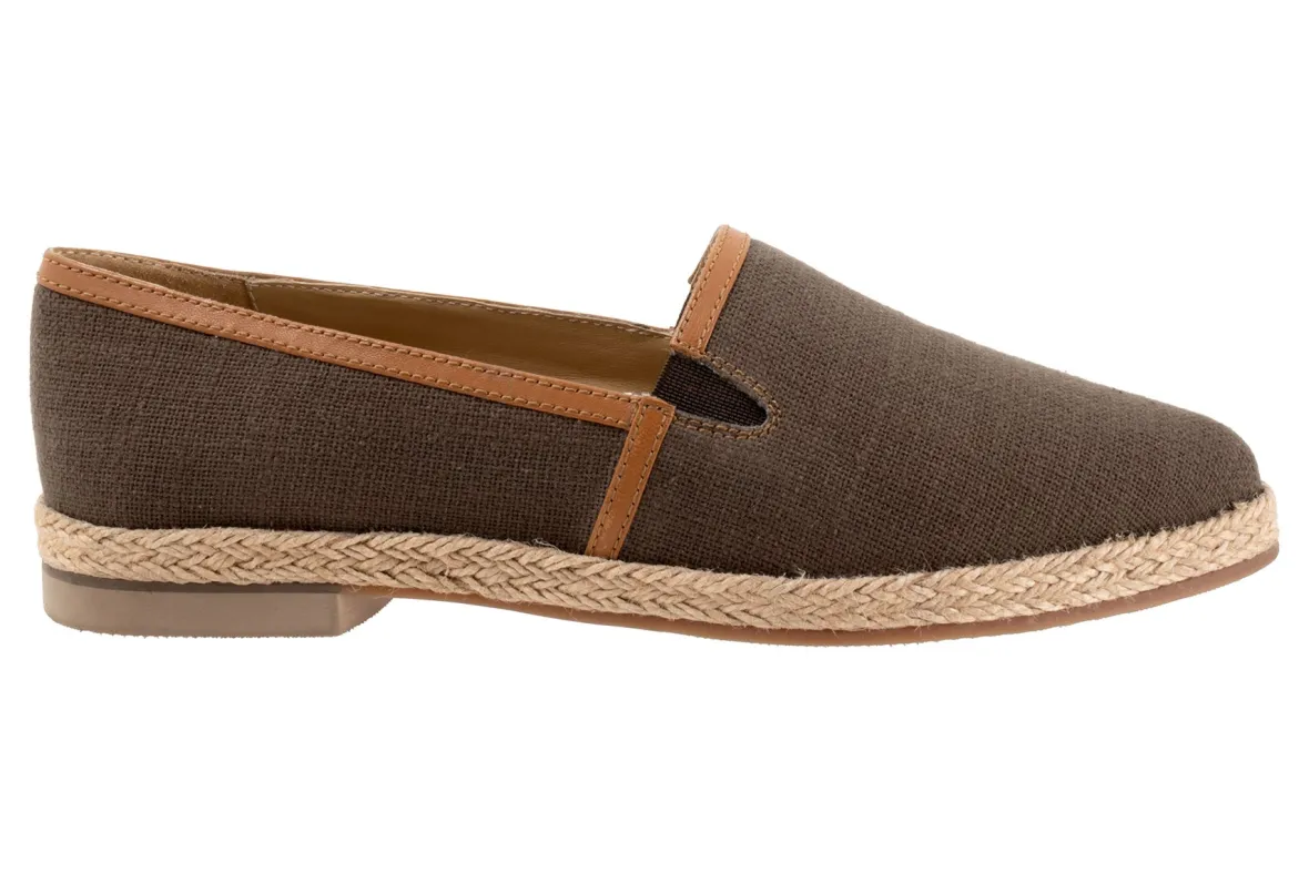 Trotters Estelle is a modern take on the classic slip-on shoe. These versatile sneakers have a canvas fabric upper, espadrille accents and rubberized outsole. A removable and cushioned EVA footbed, elastic goring and ⅜ inch heel height will make these slip-ons a new favorite.