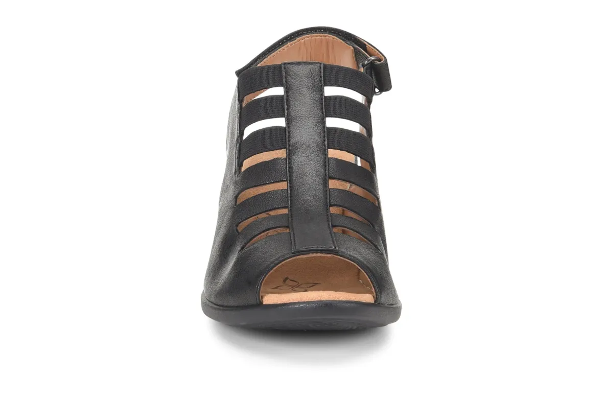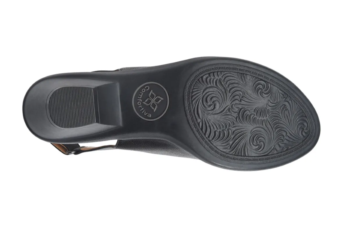 Comfortiva Faye is a strappy sandal built for comfort. Enjoy leather uppers, an adjustable slingback strap, flexible gore and memory foam cushioned footbed. Other features include a breathable synthetic lining, 2-inch heel height and a slip-resistant TPR outsole.