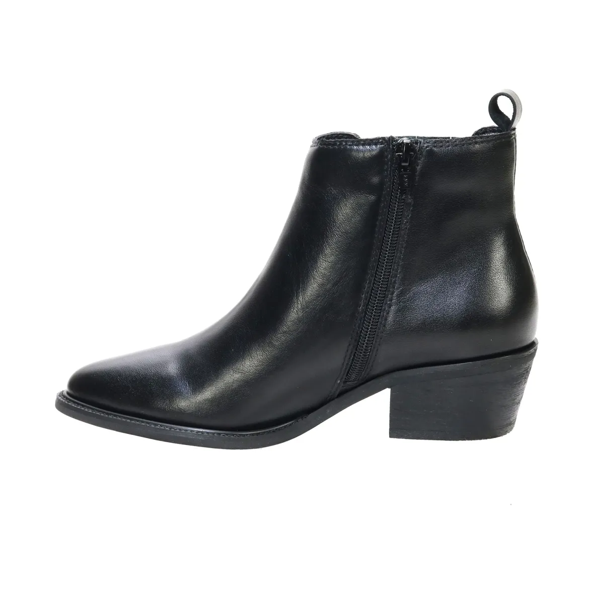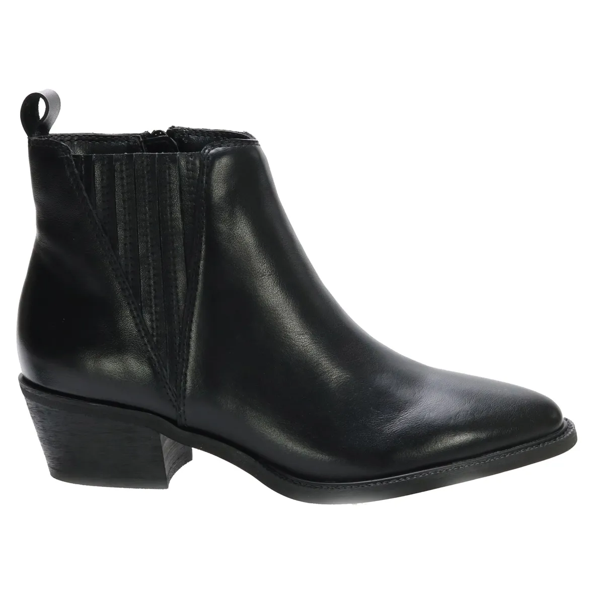 The stunning David Tate® Focus ankle boot showcases a sleek stacked heel, a western-style toe, an elastic side panel, and a convenient inside zipper. Crafted with polished leather and exuding a timeless Western aesthetic, this stylish boot effortlessly elevates any ensemble.