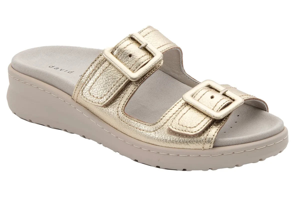 The Frenchy Casual sandal from David Tate features:Mini pebble grain leather upperHook-and-loop adjustability under faux…