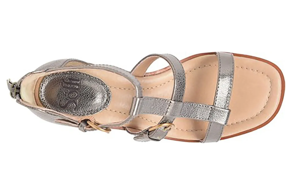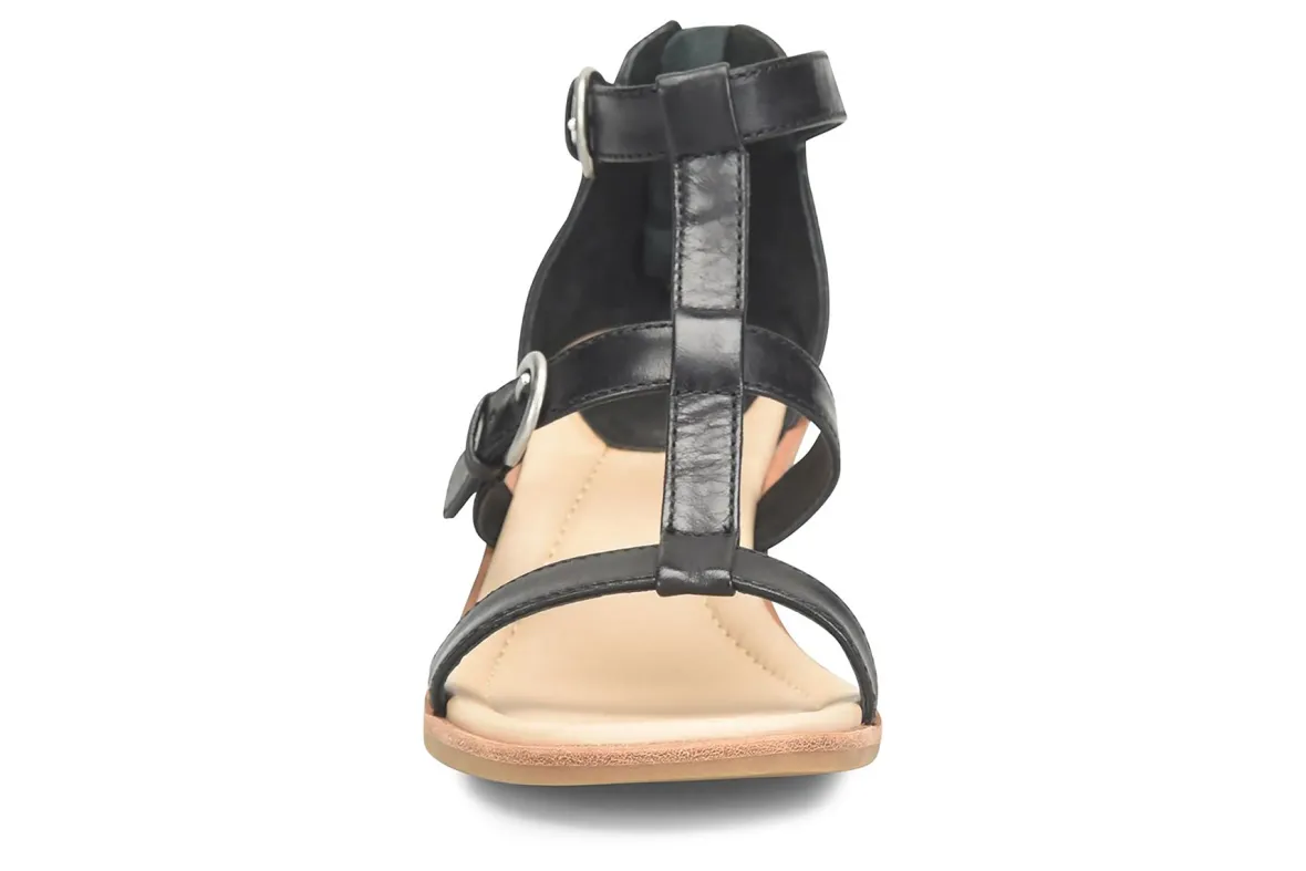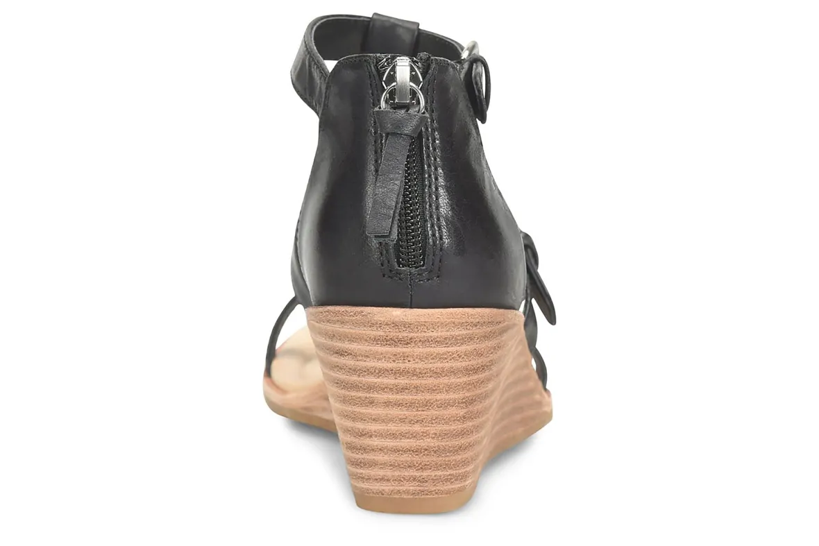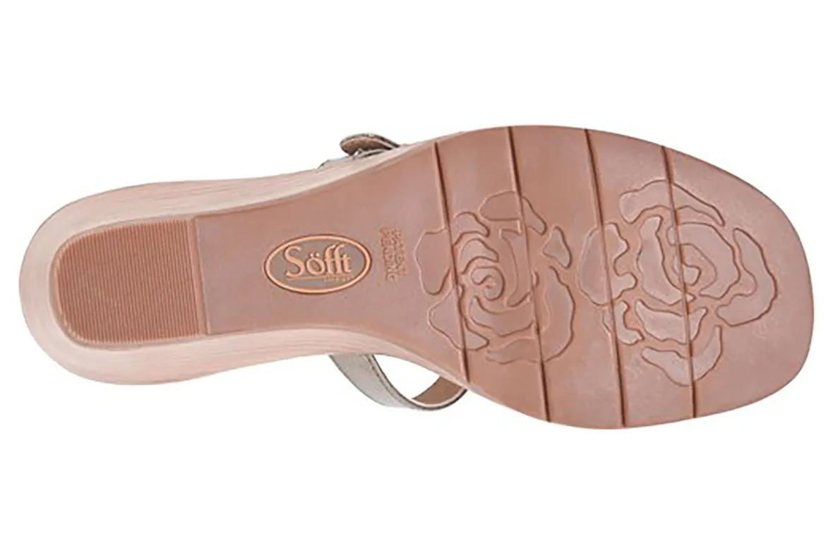 Sofft Gaige is a sophisticated gladiator-inspired sandal. These warm weather shoes have leather uppers, adjustable buckles, back zipper and TPR outsole. A leather-lined footbed provides added comfort, while a 2 ½ inch stacked heel wedge offers elevated style.