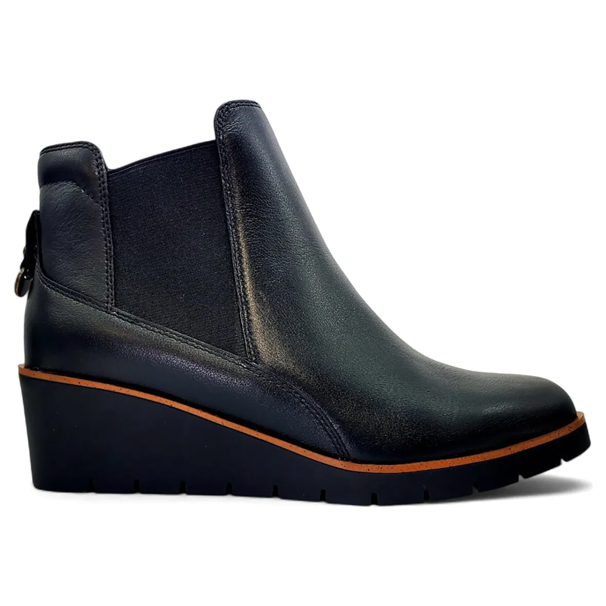 transformed the classic wintery footwear into a part boot, part wedge silhouette that you can wear in pretty much any season. Putting comfort first, these removable footbed boots utilize our new wedge construction, Margot, to become stylish, contemporary and practical. The elastic side gussets are not only comfortable, they ensure the boots are easy to put on and remove. Our favorite features? The contrasting trim and subtle gold-tone hardware.FEATURES