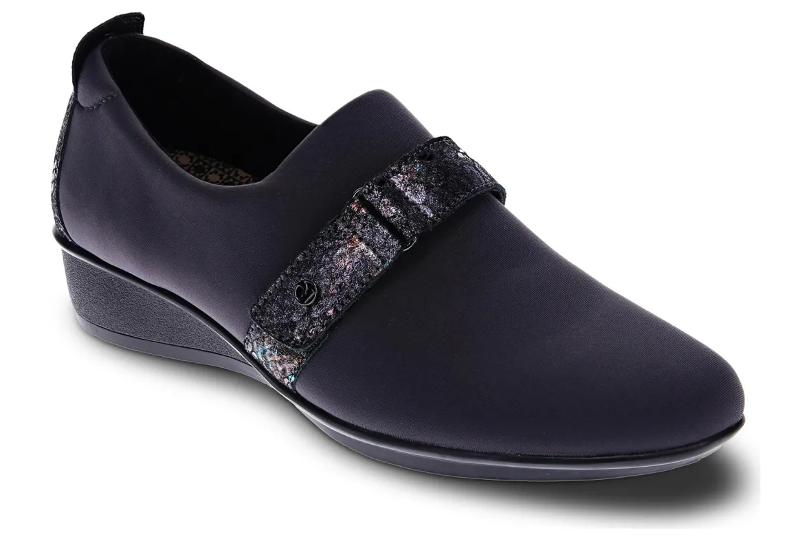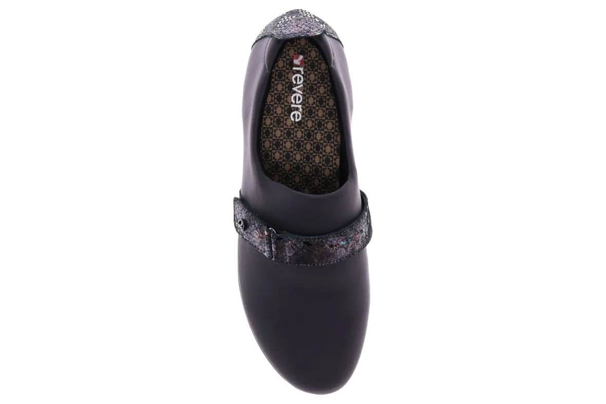 Revere Genoais an upscale and comfortable stretch loafer. These chic shoes have a stretch textile upper, contoured footbed and slip-resistant outsole. A forefoot cushion zone provides added comfort, an adjustable strap secures feet, while matching strap extenders offer extra width.Stretch Textile Uppers.Contoured Footbed.Forefoot Cushion Zone.Slip-Resistant Outsole.