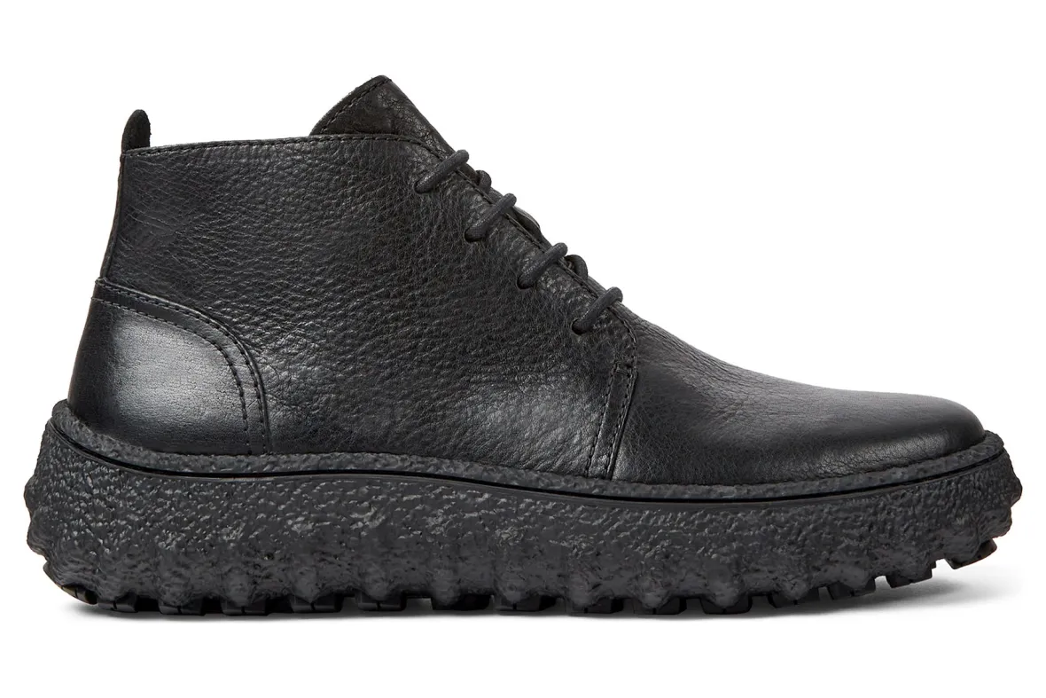 Lace up ankle boot for men. Waxed nubuck upper and Michelin rubber outsole.Ground reimagines urban street style by adding a contemporary twist on the industrial Camper aesthetic. The chunky outsole made with a mix of standard and natural rubber provides superior grip thanks to MICHELIN technology. Different, distinctive materials used for the sole and the upper, 360° stitching, premium leathers certified by the Leather Working Group enhance its silhouette and elevate this style for winter.