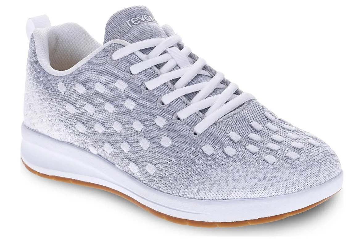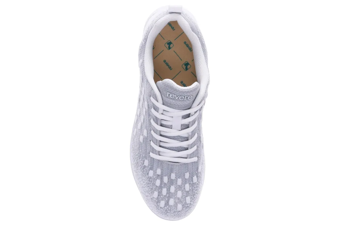 Revere Haiti is a breathable and lightweight knit sneaker. These active shoes have mesh uppers and linings, removable cushioned footbed and EVA outsole. A round toe silhouette, padded tongue and collar and heel tab pull loops outline these chic and comfortable sneakers.