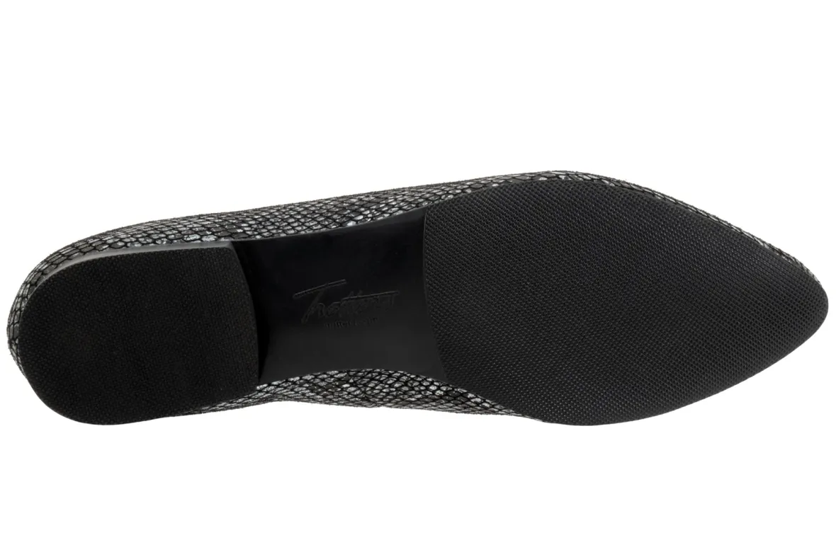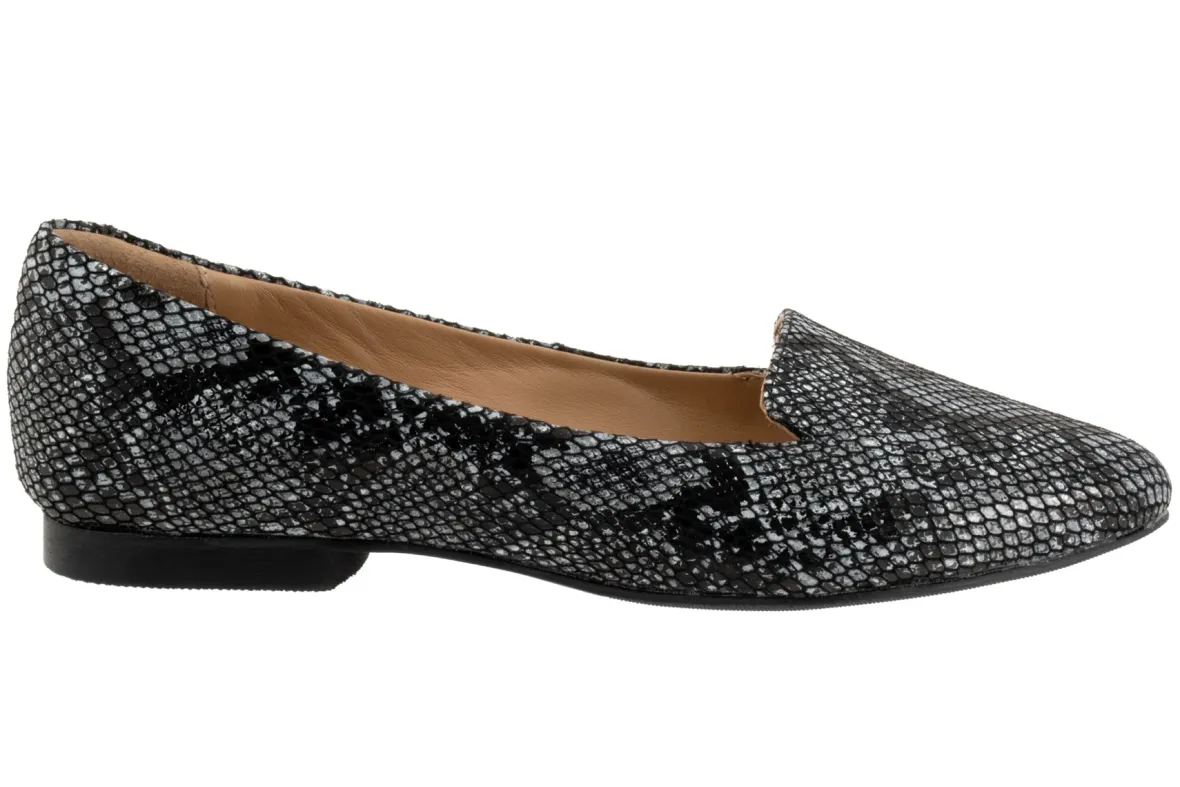 Trotters Harlowe is a little pointed slip-on with just a touch of interest along the top line. Playful colors and classics make this the go-to flat for any season. A nicely padded footbed makes for a cozy comfortable feeling.