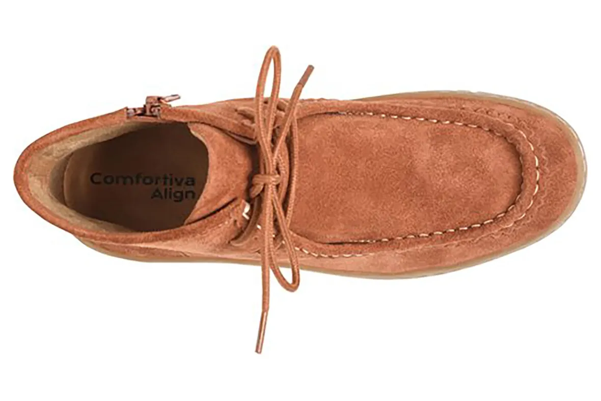 Comfortiva Holland is a cute and cozy bootie for cold weather days. Prominent features include Italian suede uppers, a removable footbed and a TPR outsole. These boots also have an inside zipper, moccasin-style stitching and a 1.5 inch heel height.