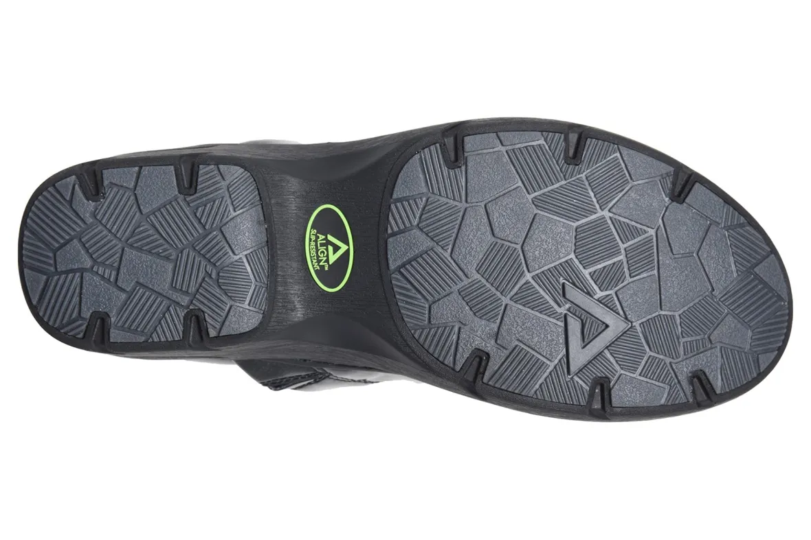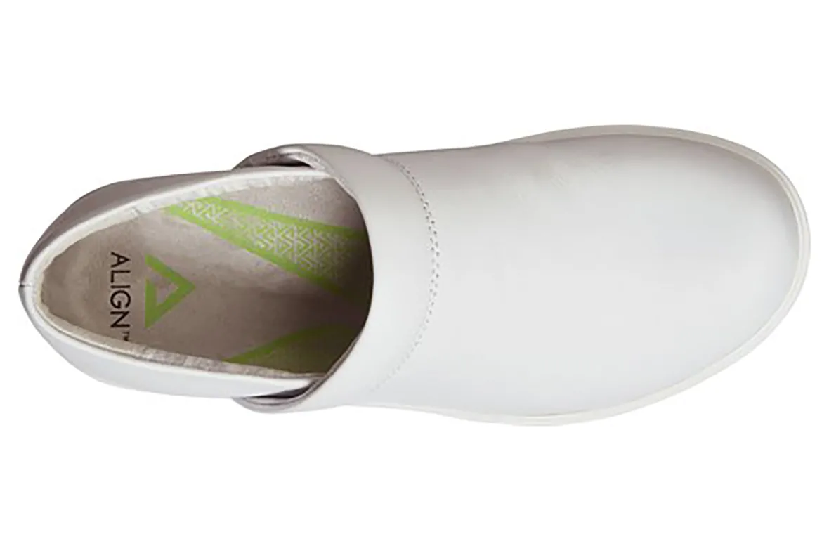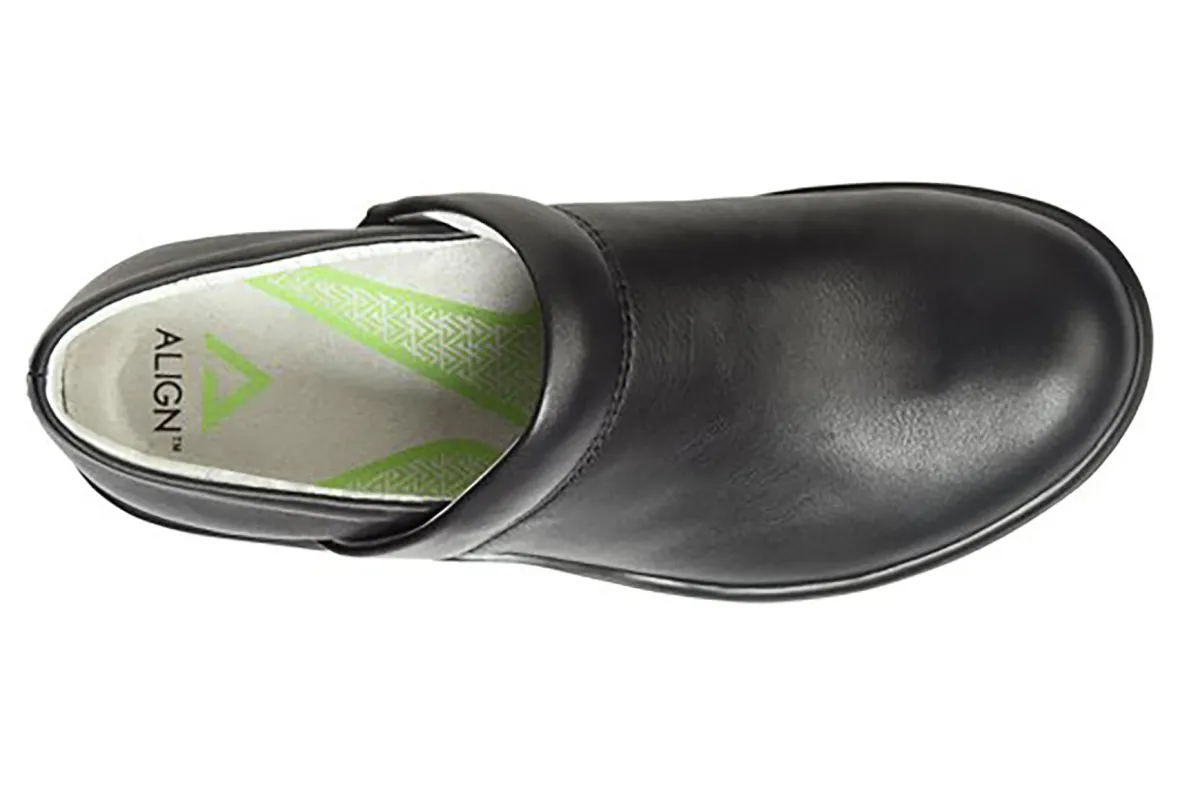 Align Indya is a comfortable and trendy clog. Features include leather or PU uppers, orthotic insole, padded heel collar and slip-resistant outsole. Linings made with recycled materials and slip-on construction will put these clogs on your list of favorite shoes.