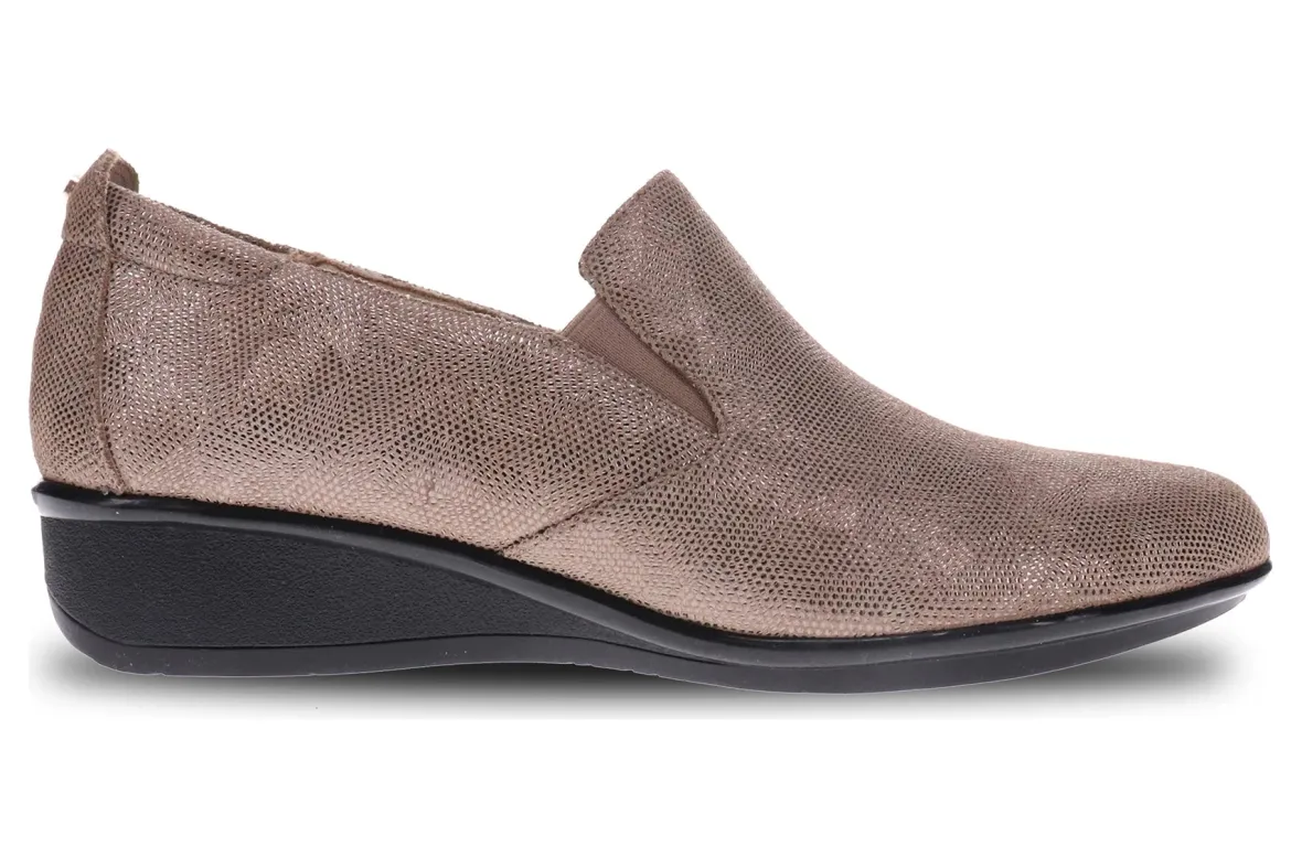 These Jamaica arch support loafers are more than timeless. Lightweight and designed with a double gusset, they have the perfect amount of stretch to slip your foot seamlessly in and out. You can also remove the arch support insoles to insert your custom orthotic, AFO or brace! The wedge offers a few welcome inches (1.5” to be precise) and padding at the heel counter, while still staying super comfortable. Plus, the textured leather construction of these orthotic loafers for women pairs well with everything, from workwear to party dresses.