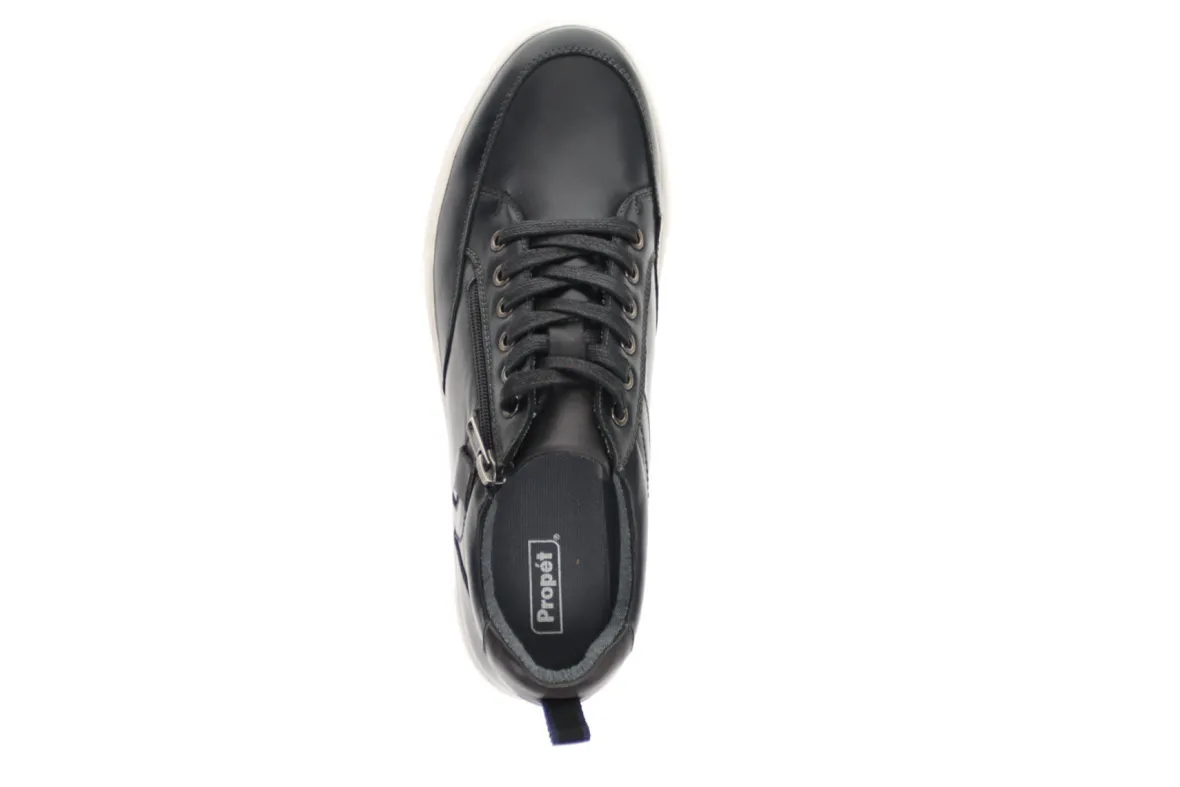 Leather upper with side zip and accent stitching plus a padded collar and tongue for comfort.