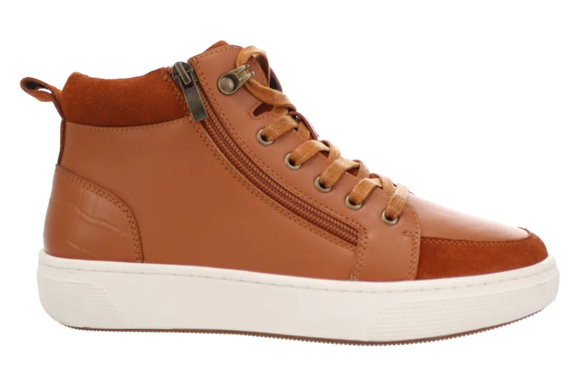 Soft leather upper with embossed leather heel accent, side zip and functional lace for maximum adjustability.