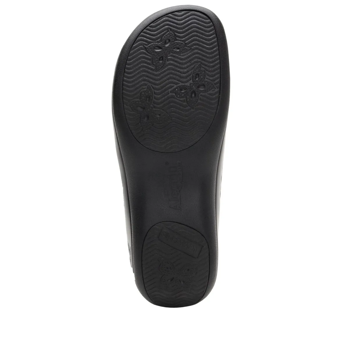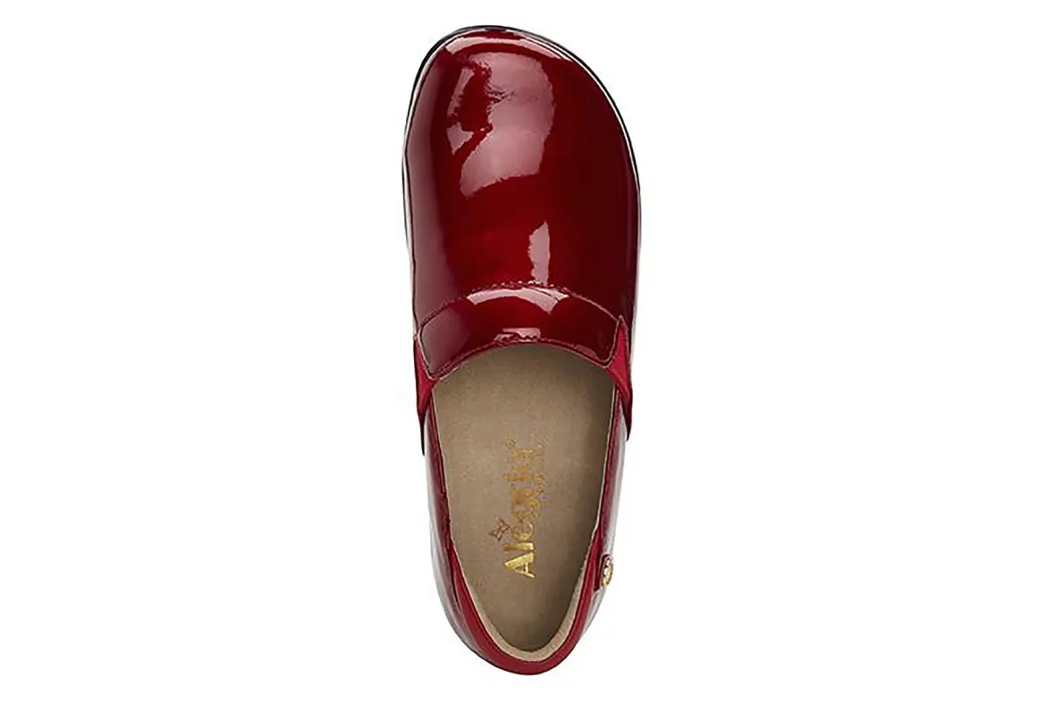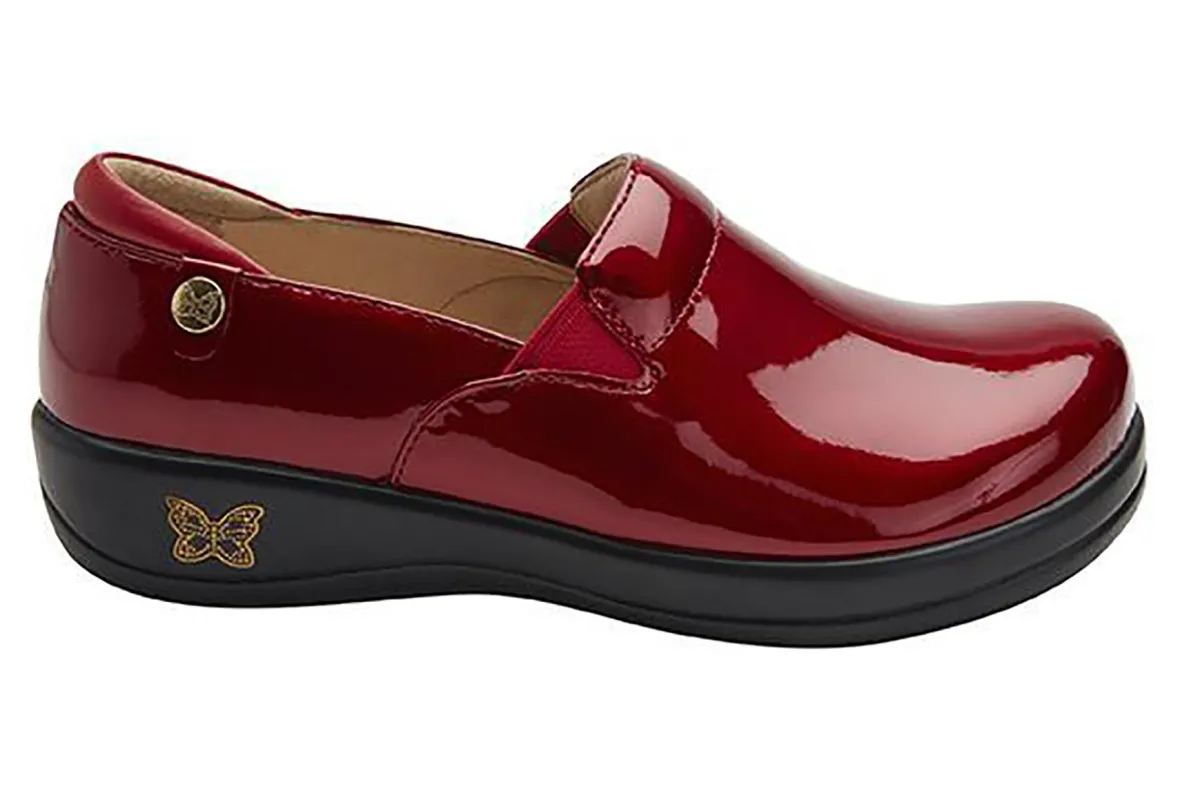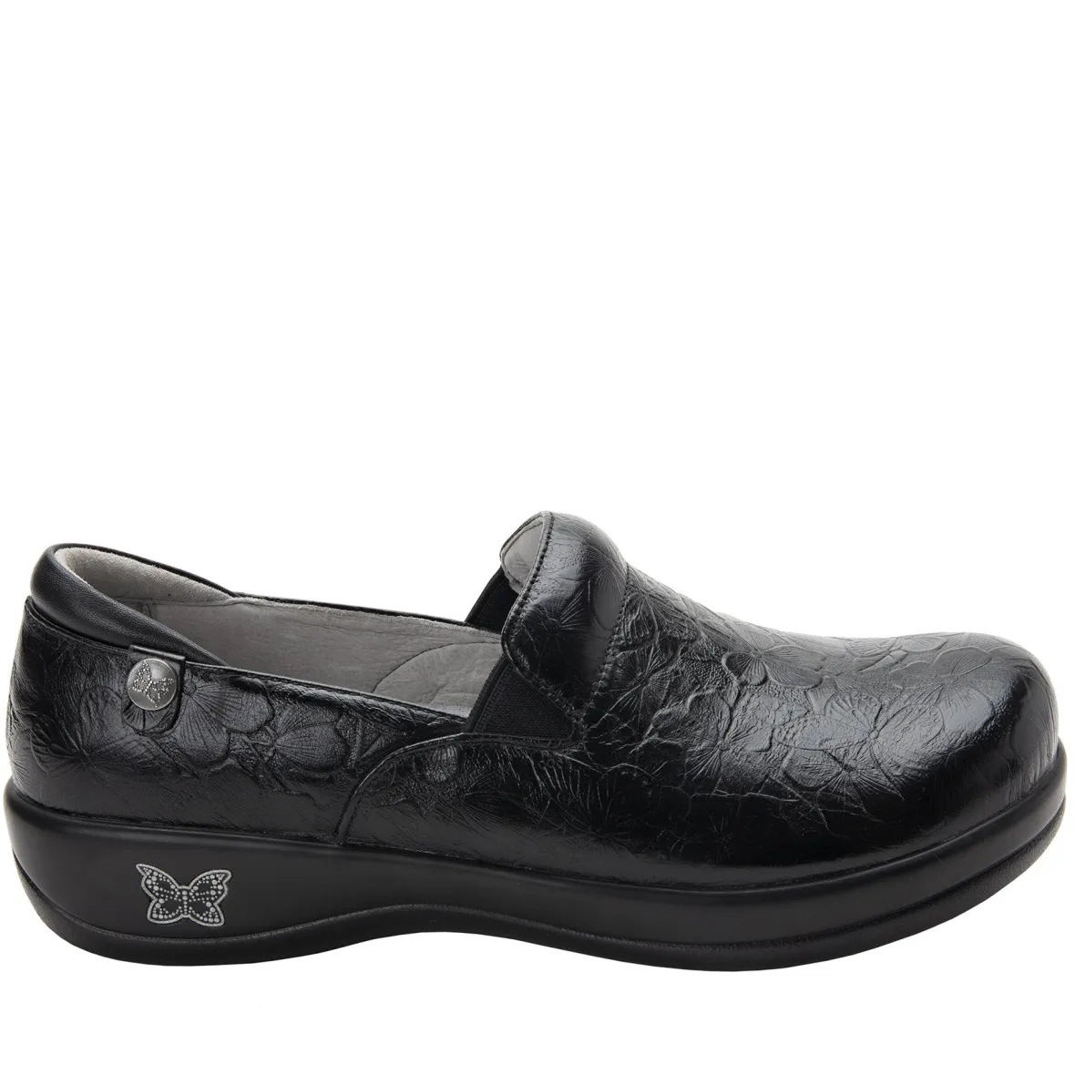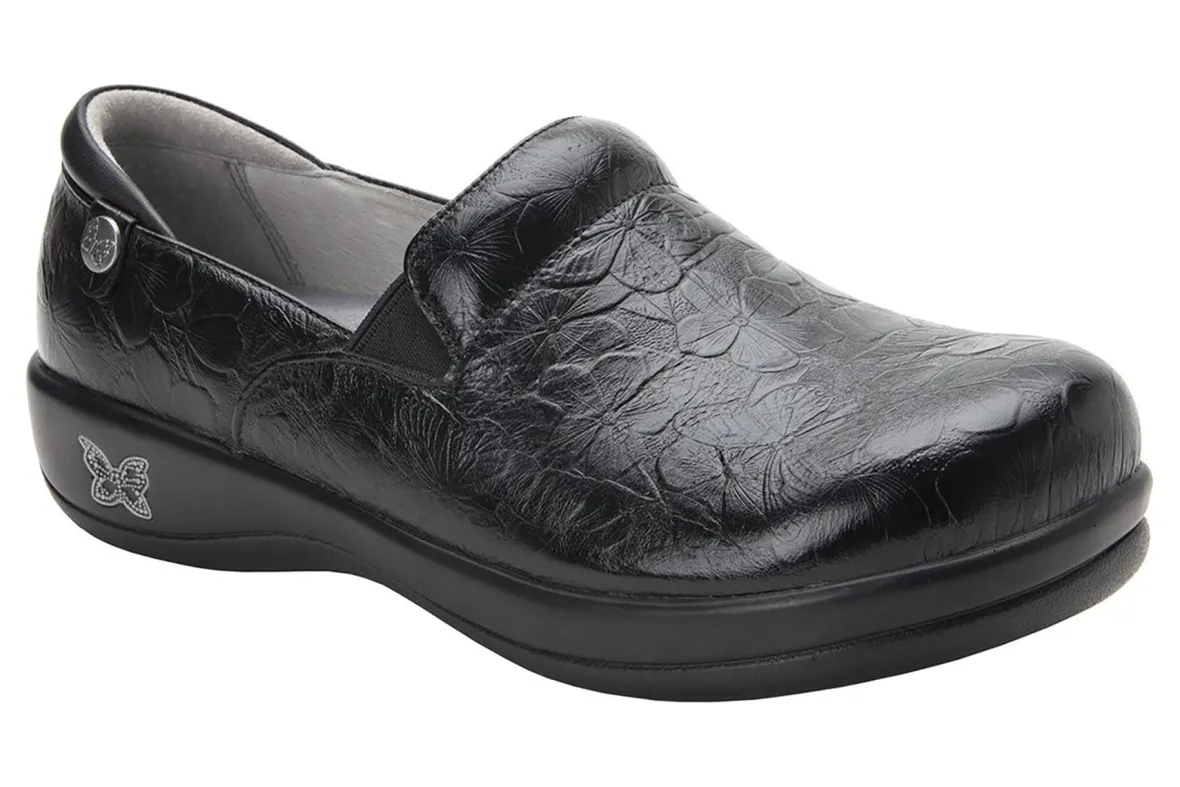 Alegria Keli is a comfortable professional clog. These work shoes have many different leather uppers, removable footbed, a suede leather footbed and sturdy PU outsole. A padded collar adds comfort, while double elastic gores secure feet for all-day wearability.