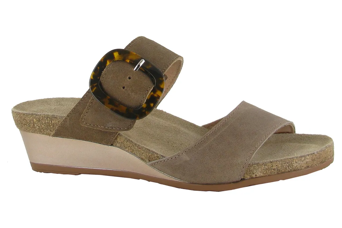 Naot Kingdom is a casual dressy slide with a sleek design. The anatomic cork and latex footbed is covered in suede and molds to the shape of the foot with wear. With an adjustable buckle strap offered in multiple colors, these trendy slides are perfect for the office or a night on the town.• Multi-Colored Leather Upper and Straps.• Outsole Material:PU.• Cork and Latex Footbed.• Heel Height:1.75 inches.