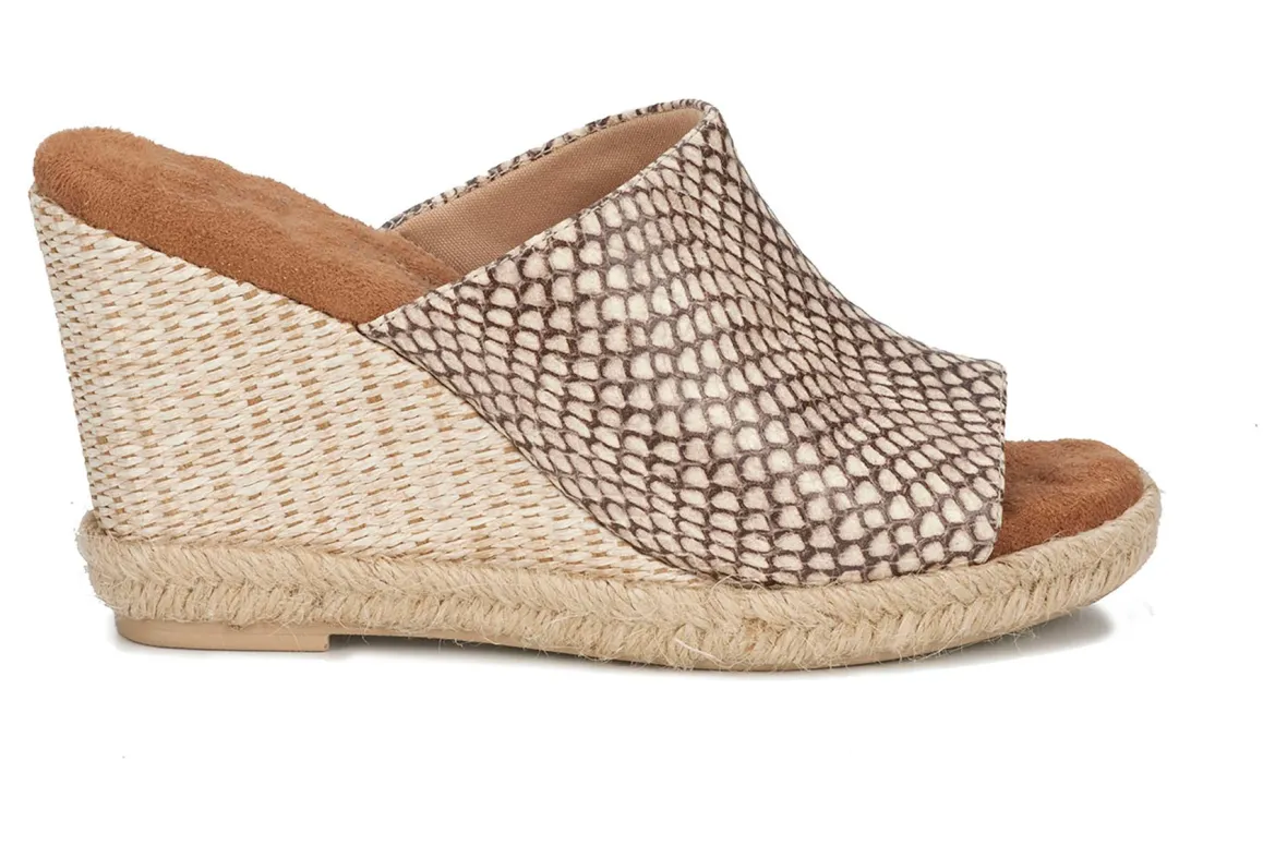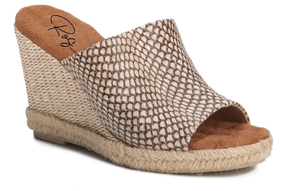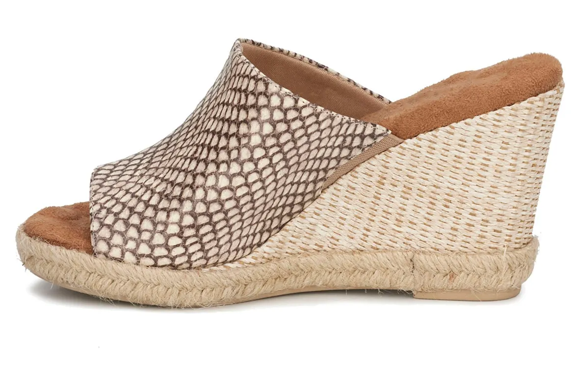 A high-heeled wedge sandal that feels like you are walking on clouds! Kinsley by Ros is made from soft leather uppers with a silky knit-fit lining that includes discreet instep goring for foot flexibility. The raffia covered 3 1/2” wedge heel is offset with a 1/2” platform and accentuated with braided roping along the edge. A super cushioned, pillowy footbed and moderate arch support provide comfort with every step! Dressed up or worn casually, you’ll find yourself wearing Kinsley all summer long!