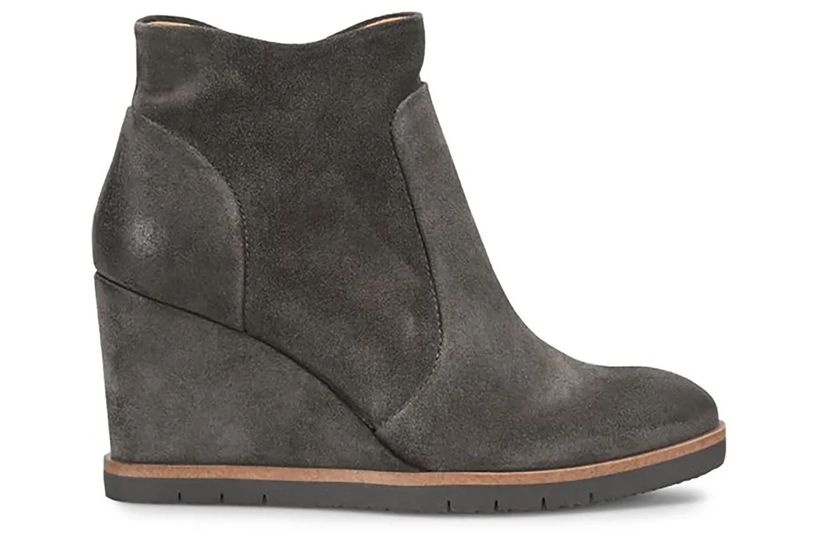 A streamlined wedge designed to take on city life boasts all the character of comfort with waterproof leathers and a TPR outsole that has excellent grip and flexibility. Lightweight TPR outsole is designed with crepe textured bottom that provides excellent traction on slippery surfaces and grooves for added flexibility with every step. Sleek and addictively comfortable, Sofft Maguirefeatures a stylish curved topline and inside zipper for easy-on, finished with soft leathers and rich suede.