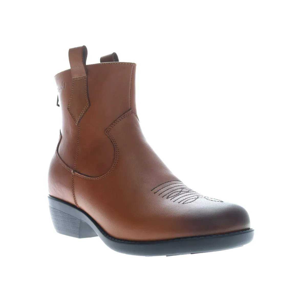 Soft leather with western toe detailed stitching and dual pull tabs for easy on and off.