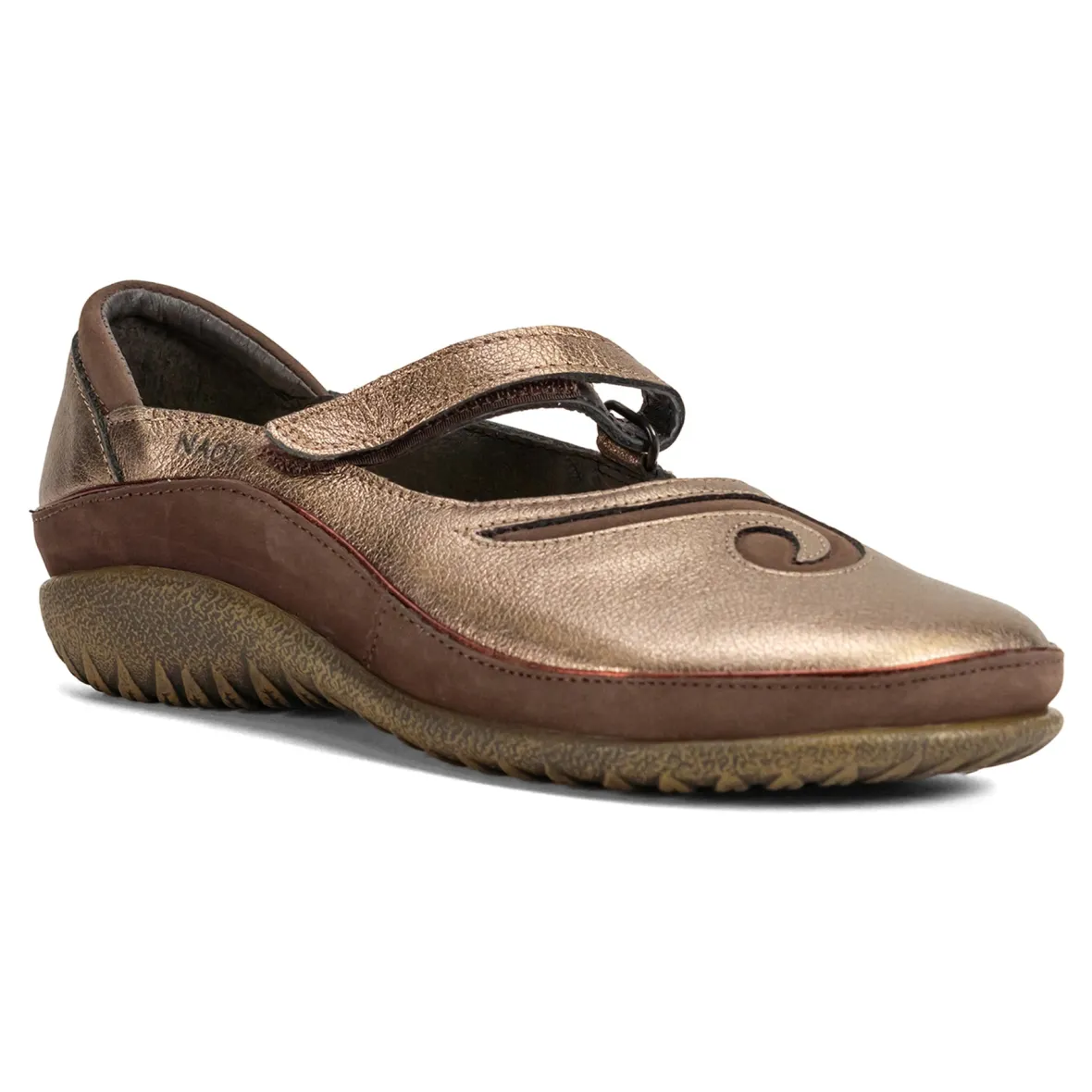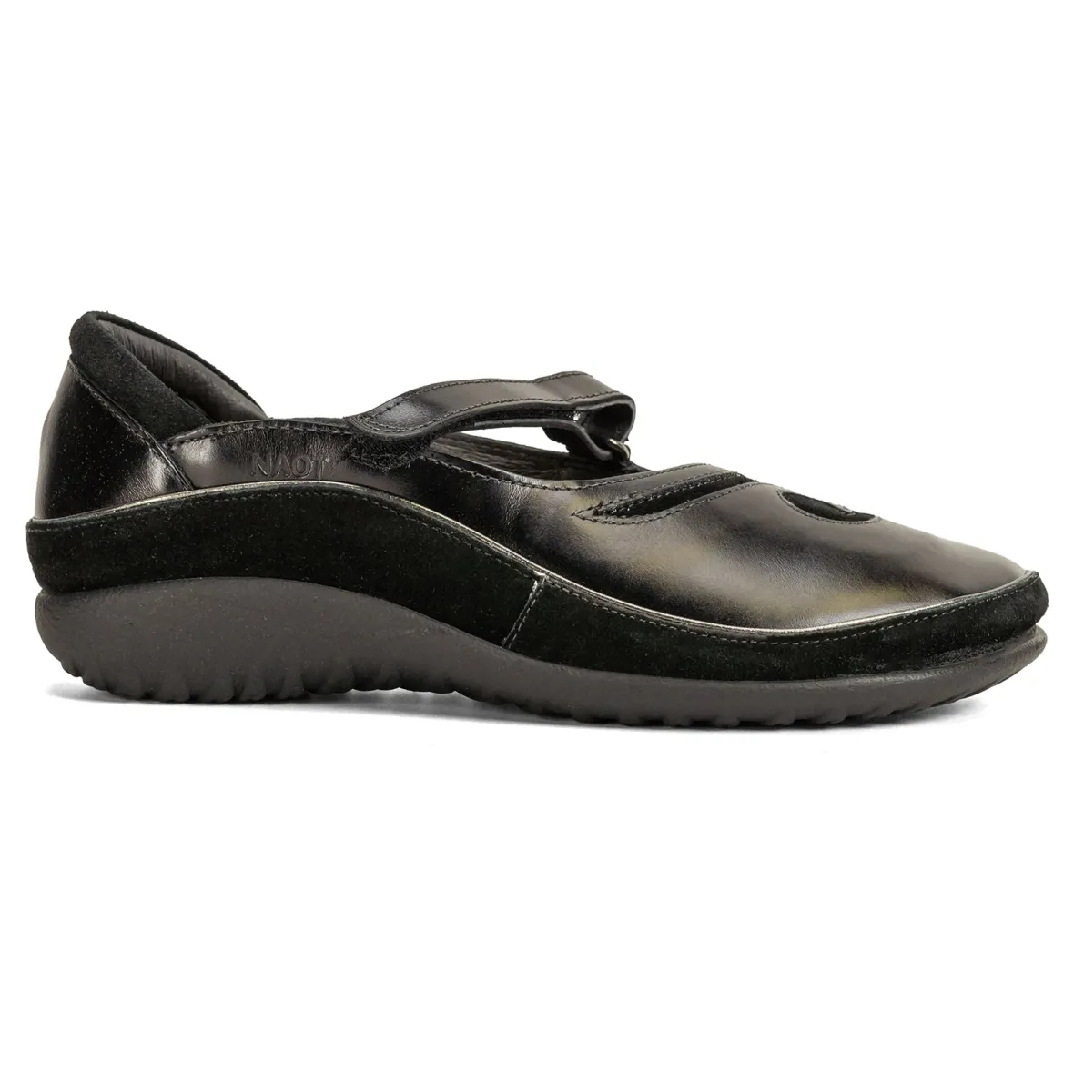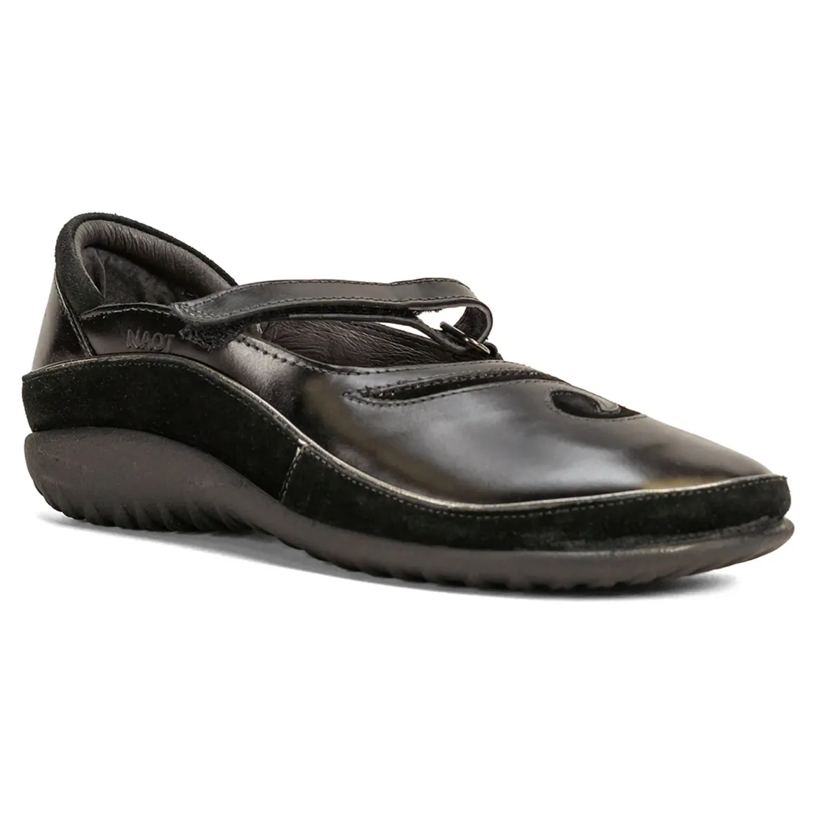 Travel to distant locales in the comfort of the Naot Matai mary jane. An inset suede accent appeals to a seaside expression of style. Underfoot cork, latex, and rubber maintain a comfortable balance for finding new pathways.