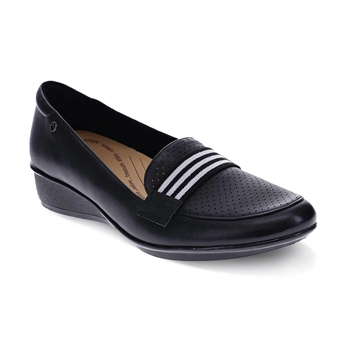 Enjoy the best of both worlds with the Revere Monte Carlo orthotic wedge shoes – part wedge, part loafer. Elastic trims detail the smart silhouette of these smooth leather shoes, ensuring a comfortable, neat fit. You can easily switch out the molded footbed for your own orthotics, if required.