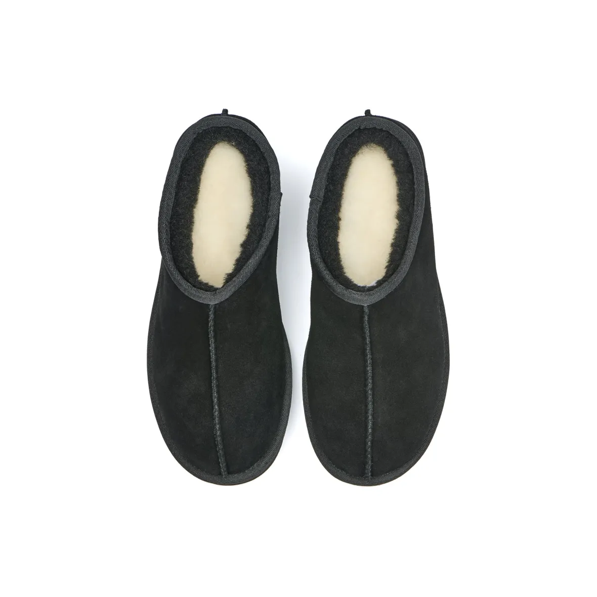 PREMIUM WATER-RESISTANT SUEDE: The water-resistant suede upper, combined with a 100% genuine wool lining, offers ultimate warmth and comfort, making these the perfect cozy mules for women.