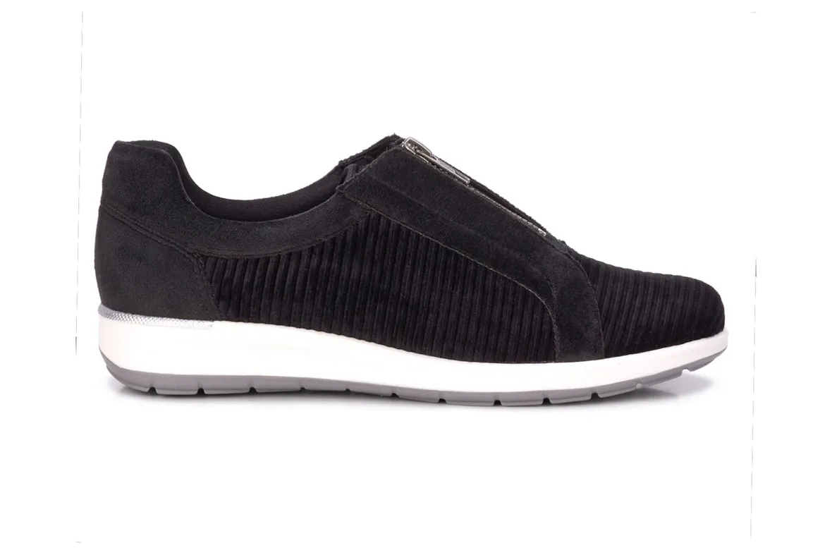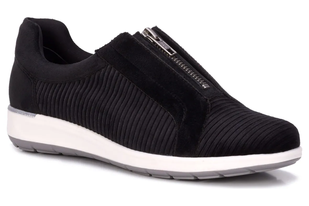 Introducing your new favorite athleisure sneaker! Made from velvety-soft corduroy fabric uppers, Oliver has a plethora of fit and comfort features! The sturdy zipper is functional and can be worn open or closed. There is also hidden dual goring on each side of the zipper, creating an even more customized fit. The tongue and collar are both lightly padded, allowing a soft, non-slip fit. Knit fit linings and a suedemicrofiber sock liner keep feet dry and comfortable – with or without socks! Our signature Tiny Pillows insoles provide a massaging effect to every step, with cushioned foam that bounces back, wear after wear. The 1” unit bottom is great for avoiding or reducing heel pain and provides stability and flexibility to move naturally with your foot for all-day walking comfort.