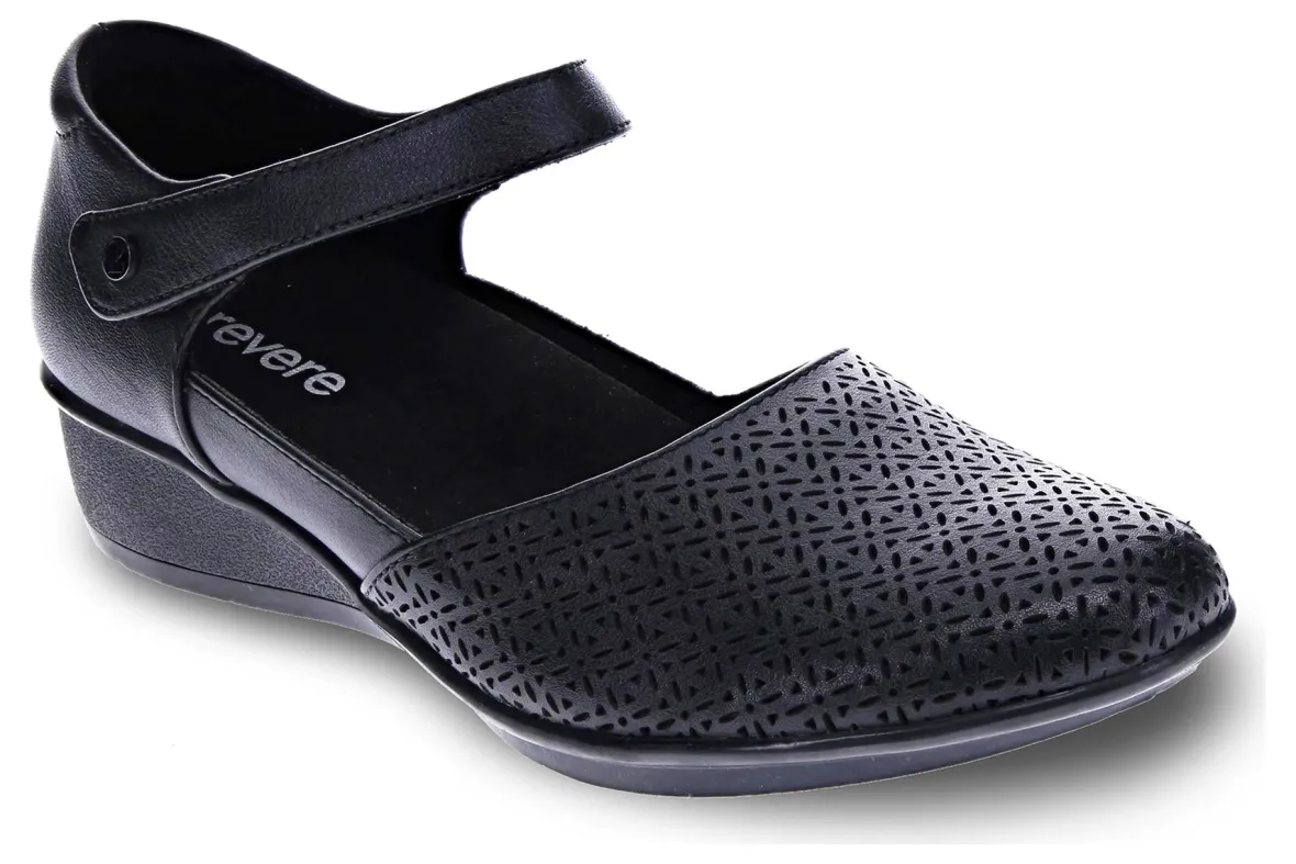 The Revere Osaka has been crafted from leather that’s laser cut with a beautiful and intricate perforated design. A comfy wedge adds just enough height to this classic and you don’t even need a pedi! These aren’t simply Mary Janes for plantar fasciitis, they’re a supportive and chic choice to take you from the office to shopping and dinner dates.